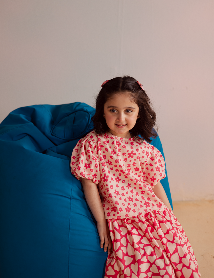 Brighten up her wardrobe with this Floral Printed Top for Little Girls. Adorned with a charming floral pattern, this top is designed from soft, breathable fabric to keep her comfortable all day. Perfect for casual wear, playdates, or outings, it pairs easily with skirts, shorts, or trousers for a cute and stylish look.