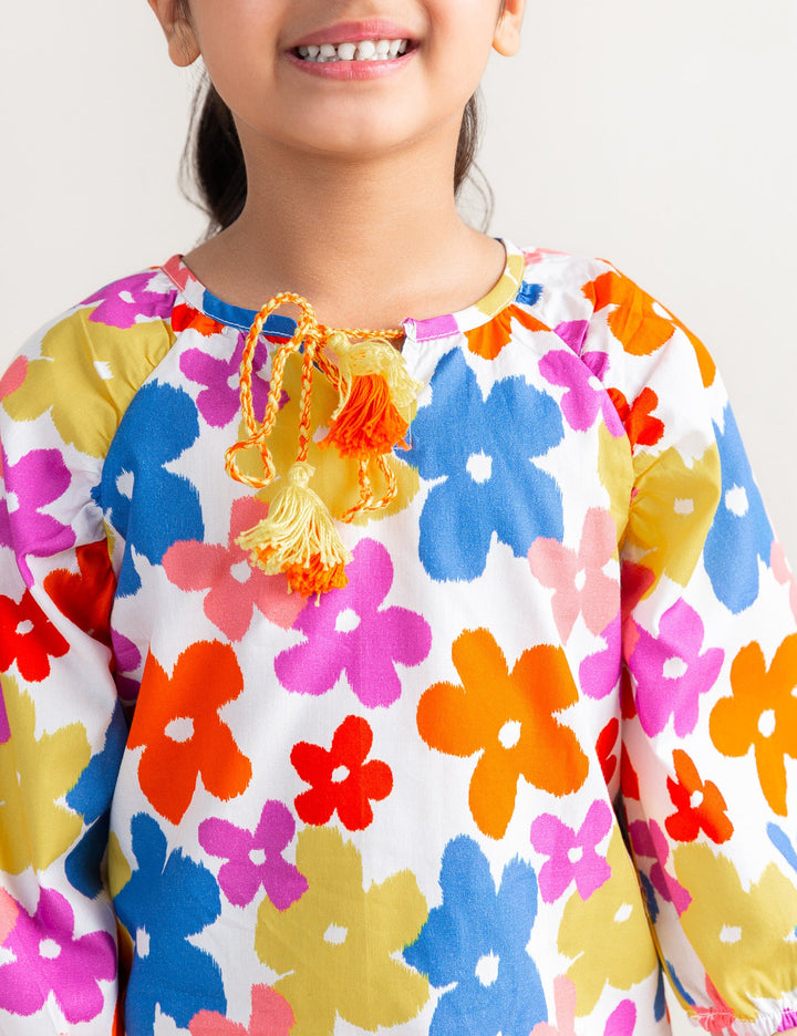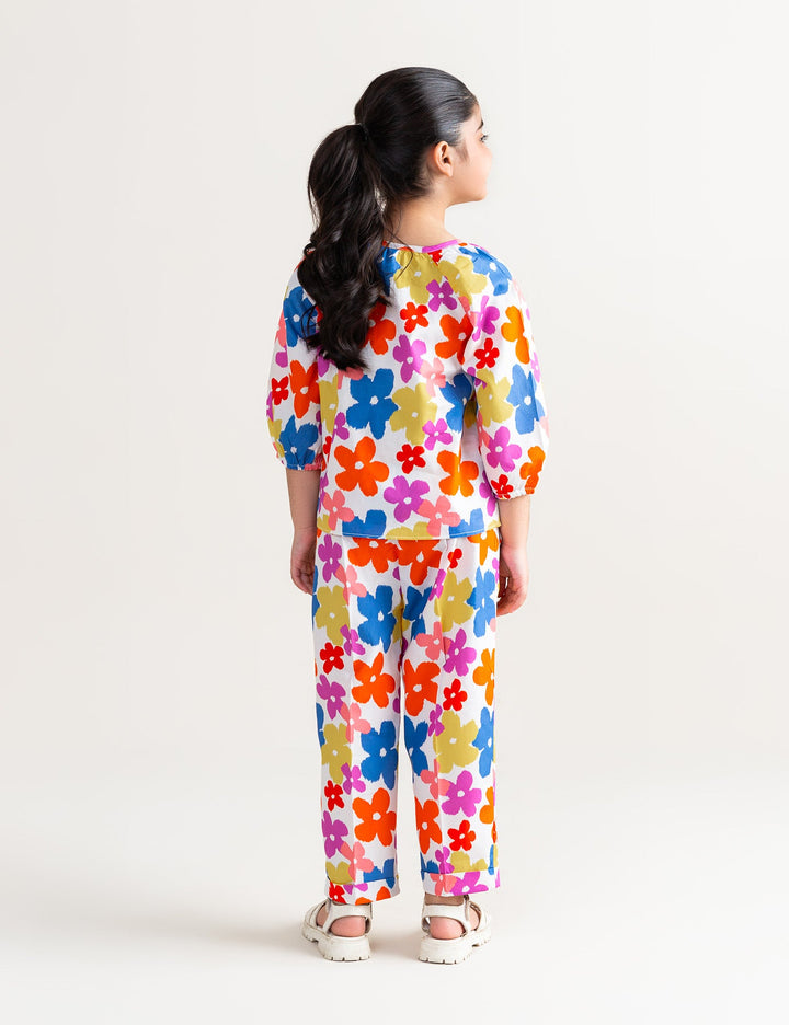 Dress her in effortless charm with this 2 Piece Floral Printed Suit for Little Girls. The set includes a beautifully printed floral top paired with matching bottoms for a coordinated look. Crafted from soft, breathable fabric, it ensures all-day comfort while keeping her stylish for playdates, family outings, or casual occasions.