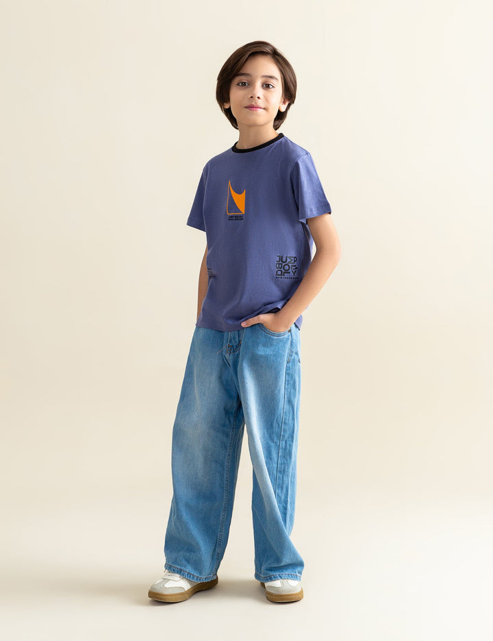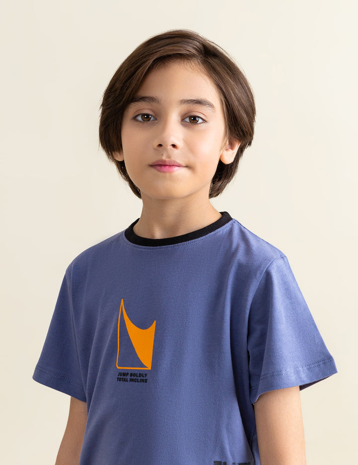 The Jump Boldly Printed T-Shirt for boys is a fun and energetic piece that inspires adventure and confidence. Made from soft, breathable fabric, it features a bold and dynamic "Jump Boldly" graphic on the front. Designed with a classic crew neck and short sleeves, this tee offers all-day comfort, making it perfect for casual wear, sports, or playtime.