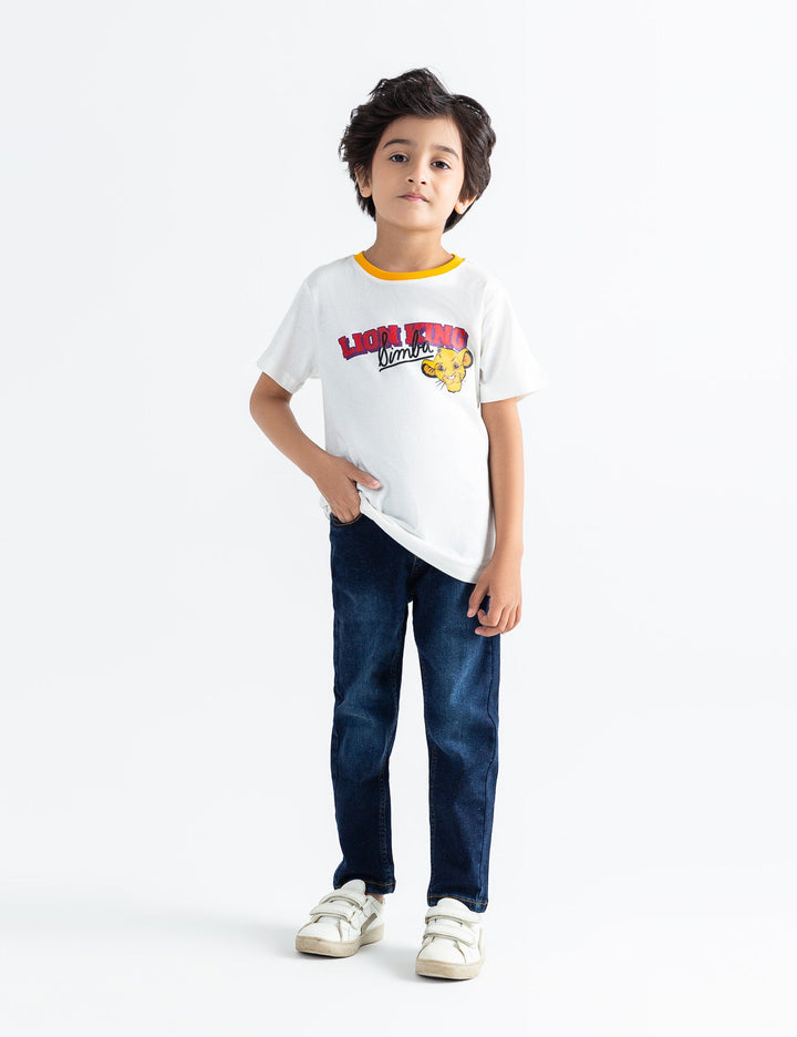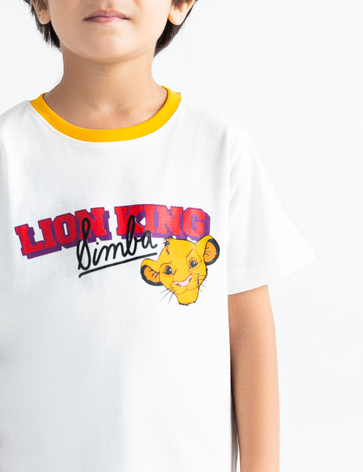 This charming t-shirt features a bold and colorful graphic of Simba from Disney’s The Lion King, along with vibrant “LION KING” text and playful script underneath. It comes with a contrasting orange neckline that adds a pop of color, making it perfect for everyday adventures. Made from soft, breathable cotton, it ensures all-day comfort for little boys.