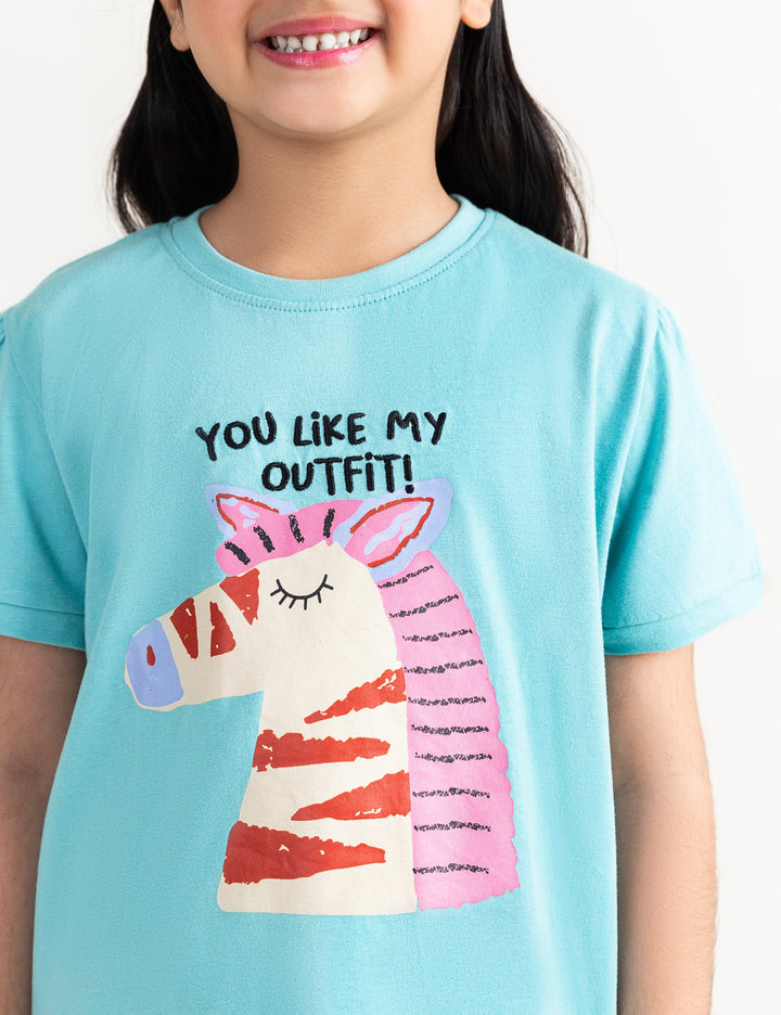 Add playful charm to her wardrobe with this You Like My Outfit Printed T-Shirt for Little Girls. Featuring a fun and sassy printed slogan, this tee is crafted from soft, breathable fabric for all-day comfort. Perfect for casual outings, playdates, or everyday wear, it pairs easily with skirts, jeans, or shorts for a cute and confident look.