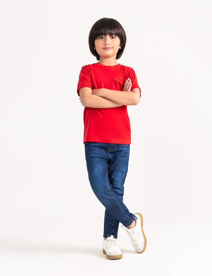 Revitalize your summer wardrobe with this t-shirt in a refreshing hue featuring a round neck with a button placket and chest pocket. It is made in soft cotton jersey fabric that is breathable and light on the skin.