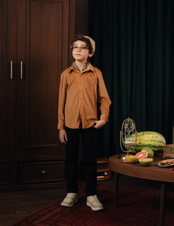 Add a touch of classic style to your boy’s wardrobe with this Button Down Corduroy Shirt. Crafted from soft, textured corduroy fabric, it offers both comfort and durability. Featuring a front pocket and full button closure, this shirt is perfect for layering or wearing on its own. Ideal for casual days or family gatherings, it brings effortless charm to any outfit.