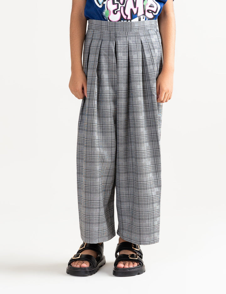 These girls’ grey checkered culottes offer a perfect mix of smart and trendy style. Designed with a classic plaid pattern and soft pleats at the front, they provide a polished yet comfortable look. The wide-leg silhouette ensures ease of movement, while the tailored waistband adds structure and charm. Ideal for school events, casual outings, or family gatherings, these culottes pair beautifully with tops, blouses, or sweaters for a chic everyday outfit.