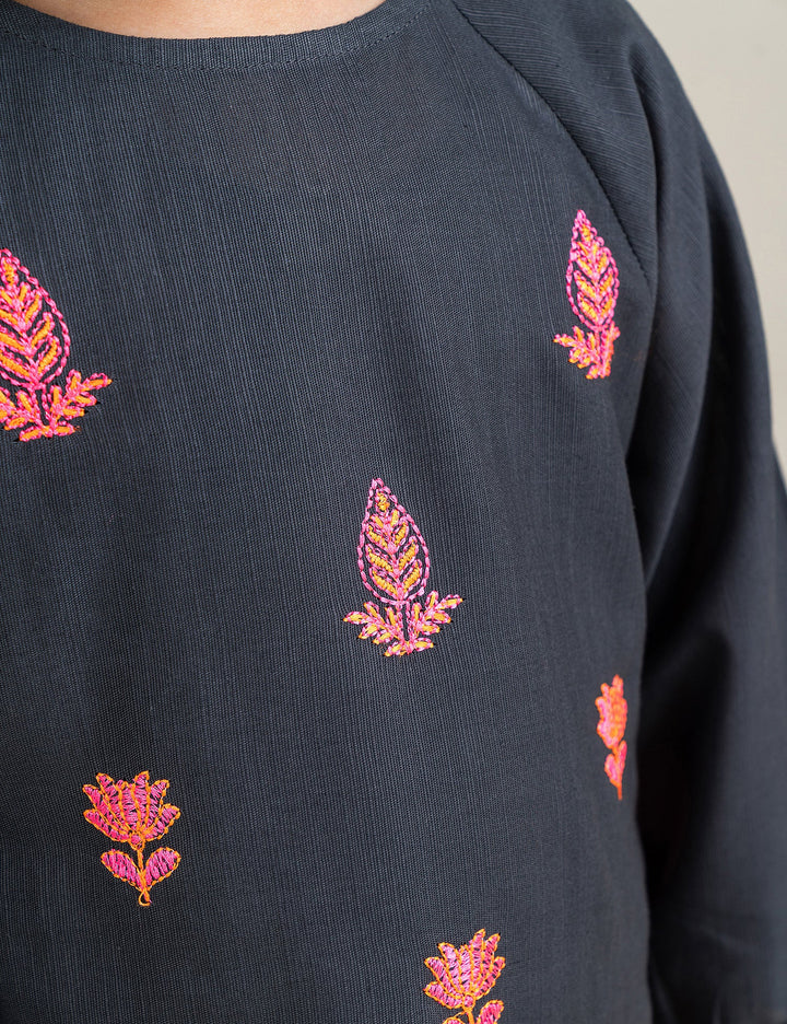 Gorgeous color fabric is designed with love , contrast thread with embroidery detail. Paired with matching regular trouser. Must have this for winter season.