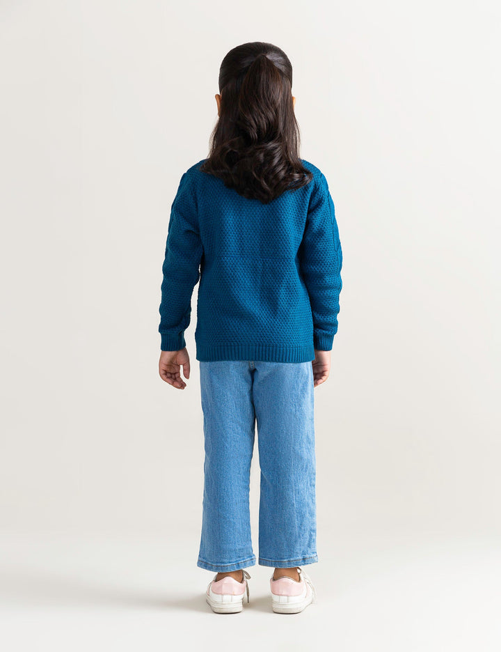 This charming teal cardigan features a cozy cable knit design with adorable bow accents on the front. Made from soft, warm fabric, it offers both comfort and style for cooler days. The button-up front and round neckline give it a classic look, perfect for layering over dresses or tops for a cute and polished outfit.