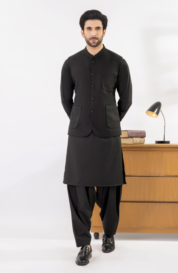 BLACK KAMEEZ SHALWAR WITH WAIST COAT