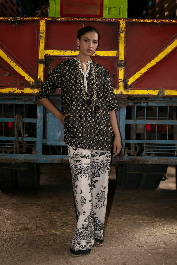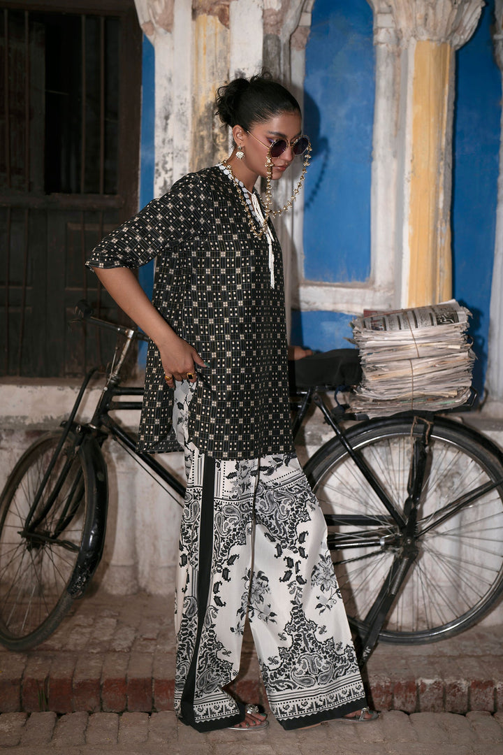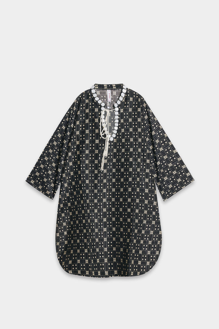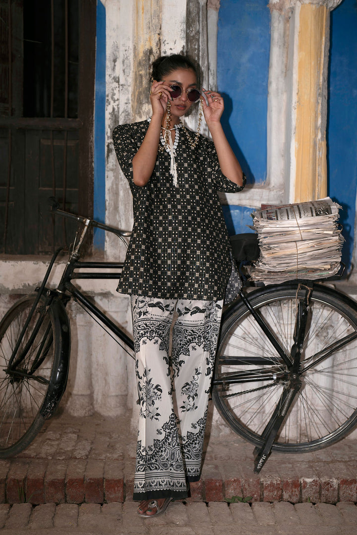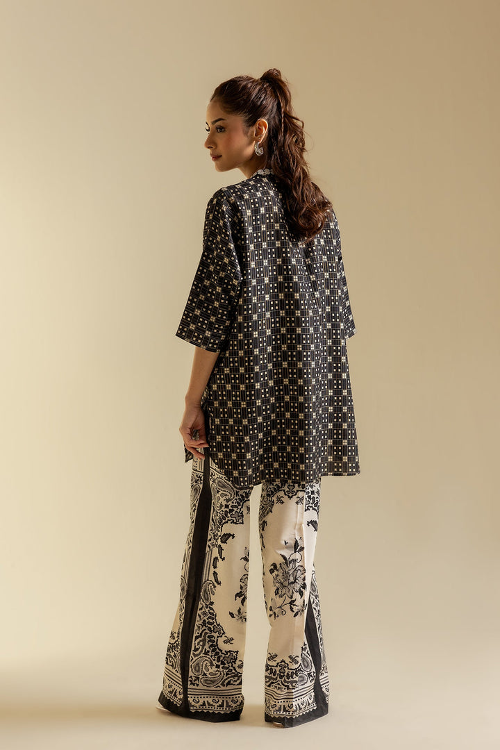 Embody grace and sophistication in this elegant top, featuring a classy black shade. The contemporary silhouette is adorned with stunning geometric pattern prints in contrasted beige hues and enhanced with sequins embellishments at neckline. This classy top is a must-have for stylish fun at any occasion this season.