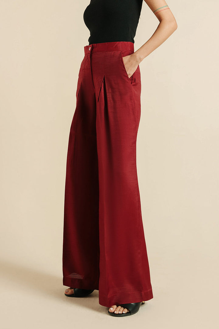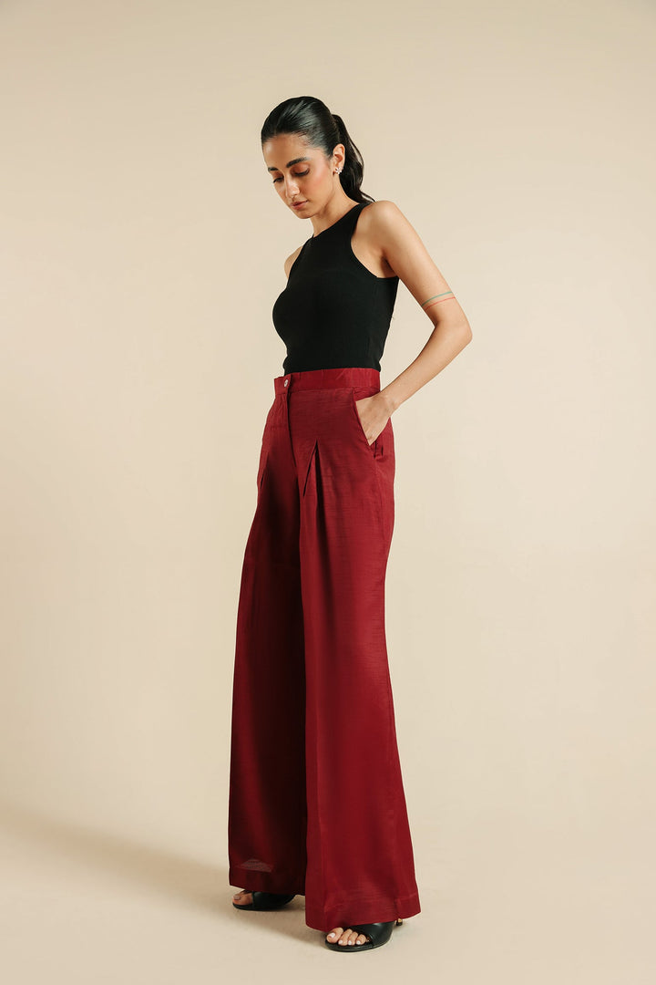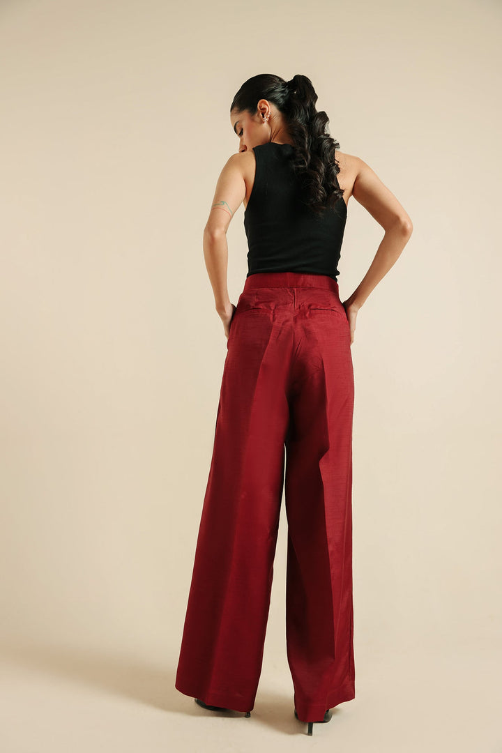 A classically chic design is portrayed on this contemporary trouser rendered in an appealing rust shade. Crafted in a contemporary flared silhouette with pleats, this style statement solid trouser is a must have to embrace at happening occasions.