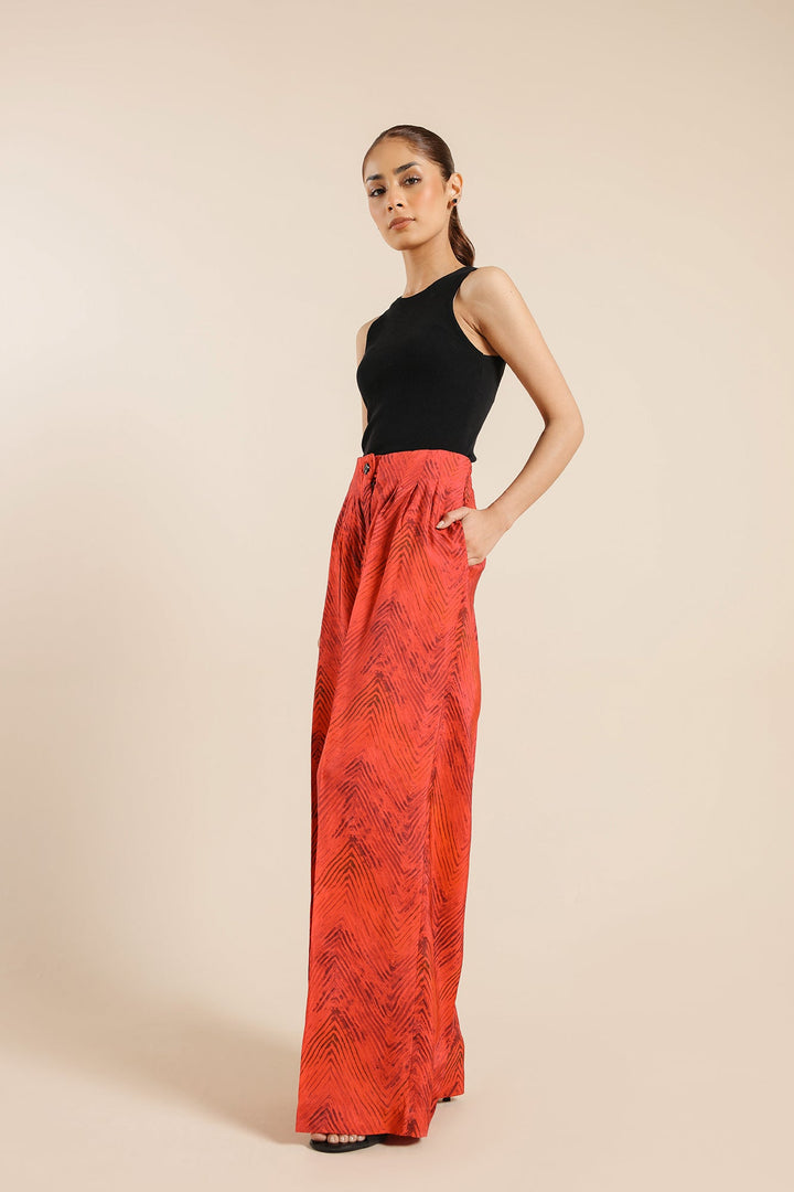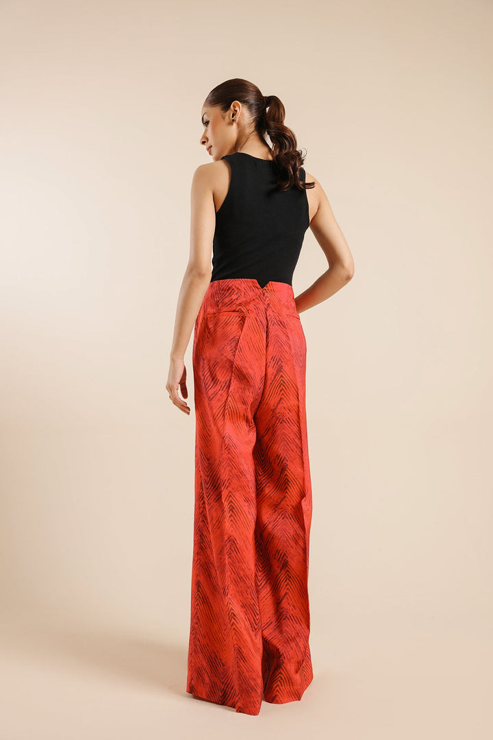 A classically chic design is portrayed on this contemporary trouser rendered in a charming ruby shade. Crafted in a contemporary flared silhouette with pleats and adorned artistic stripe prints, this style statement trouser is a must have to embrace at happening occasions and look elegant this season.
