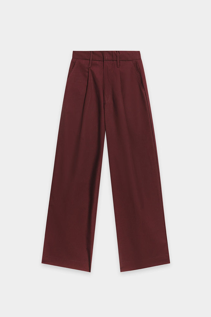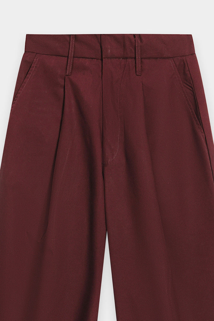 Stay effortlessly chic with these versatile burgundy trousers. Designed with a relaxed fit and subtle pleating, they offer a comfortable yet polished look. These trousers are a perfect addition to your wardrobe for both work and weekend wear.