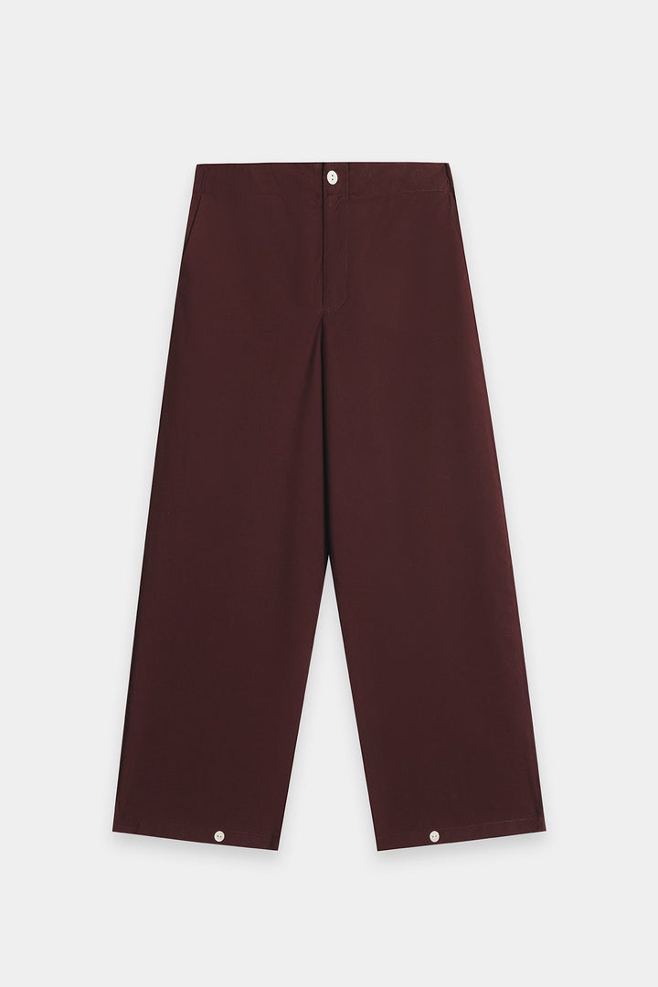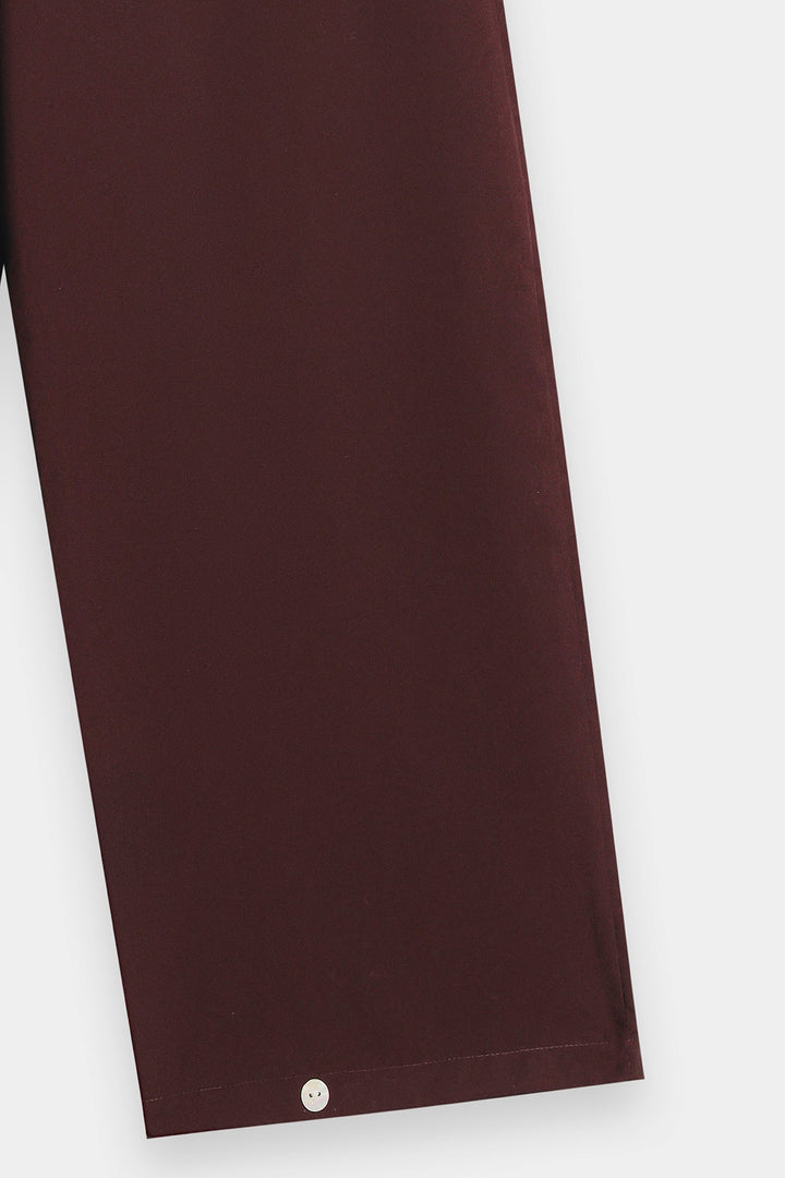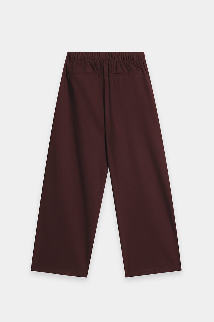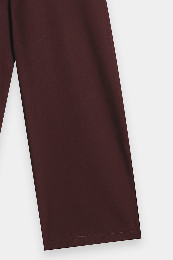 Make a statement in these elegant burgundy trousers. They feature a relaxed, wide-leg cut for a comfortable and fashionable fit. The deep burgundy color makes them a versatile piece that pairs perfectly with both casual and dressy tops, adding a touch of sophisticated style to any outfit.