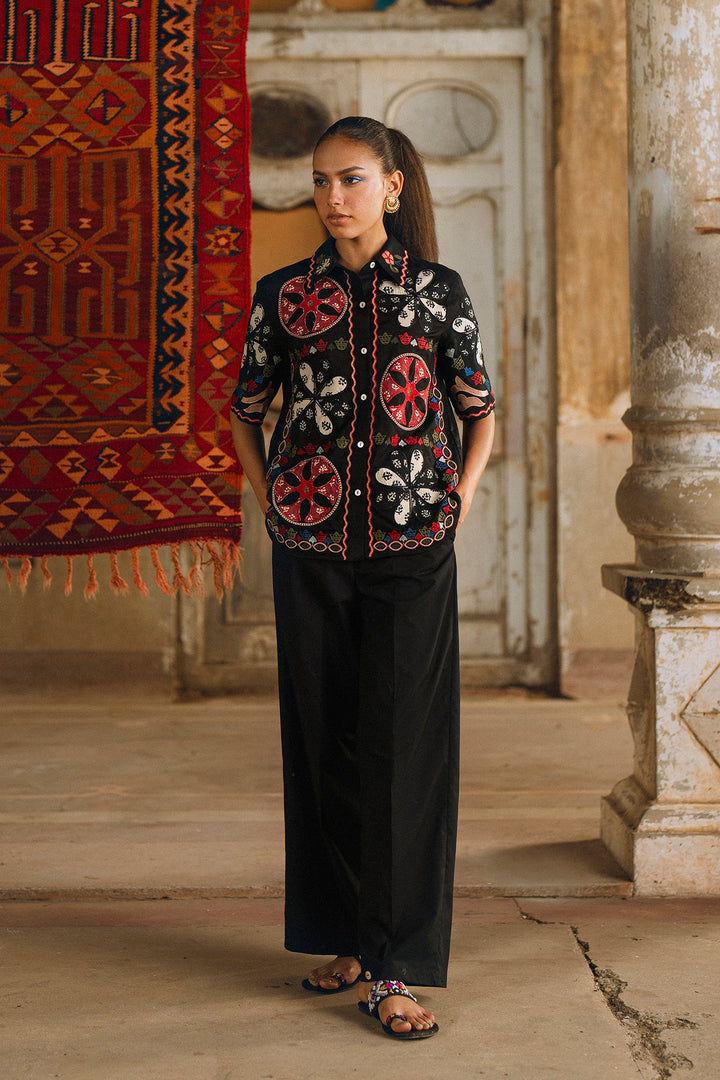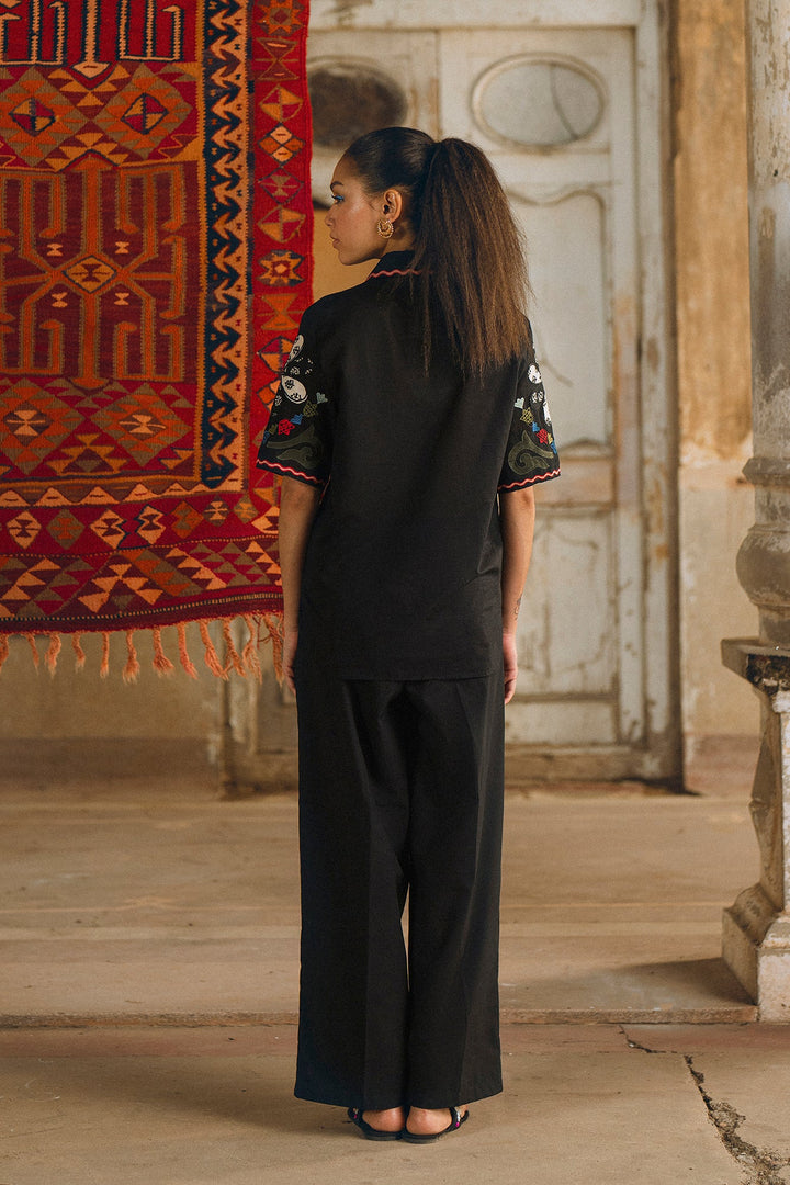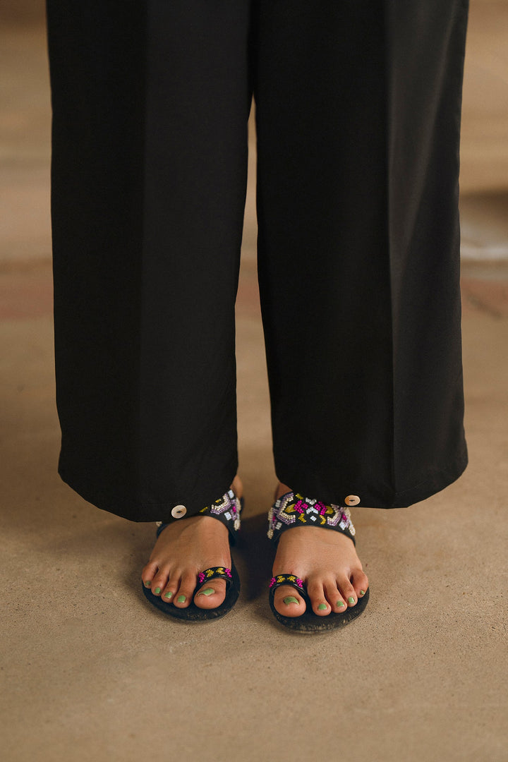 Make a statement in these classic black trousers. They feature a relaxed, wide-leg cut for a comfortable and fashionable fit. The jet black color makes them a versatile piece that pairs perfectly with both casual and dressy tops, adding a touch of sophisticated style to any outfit.