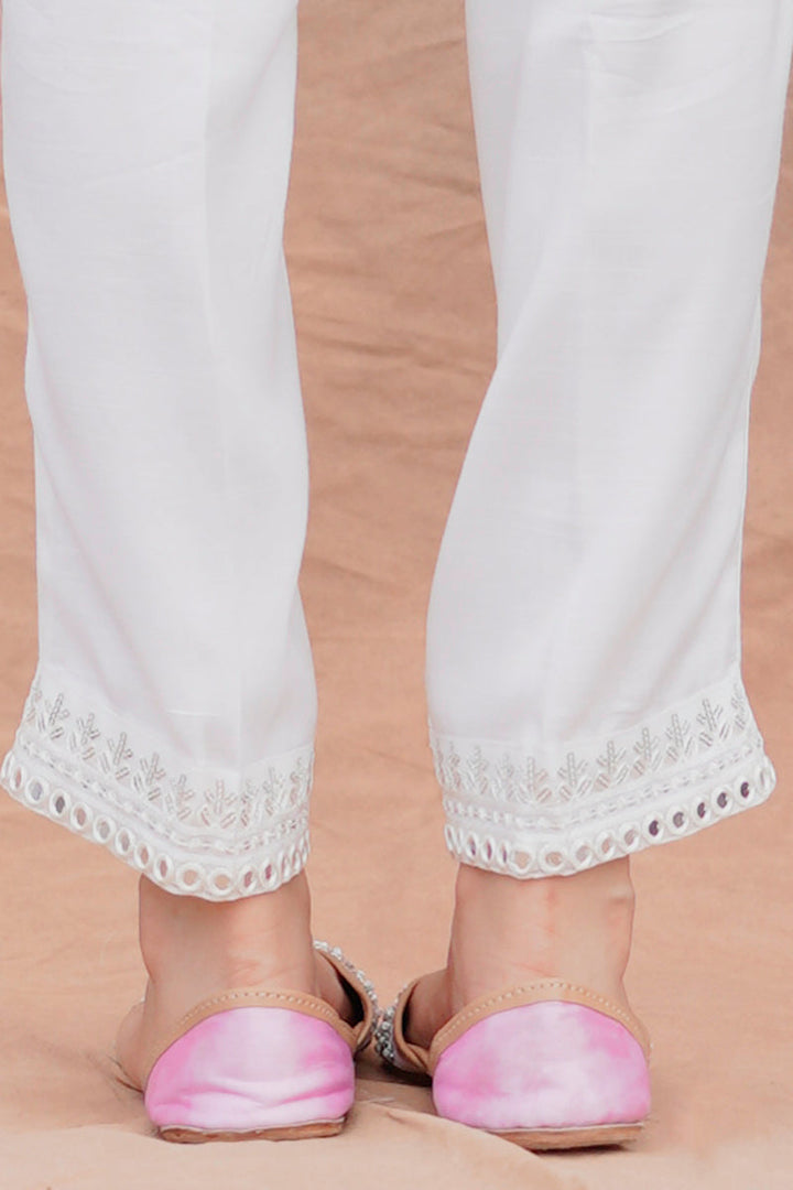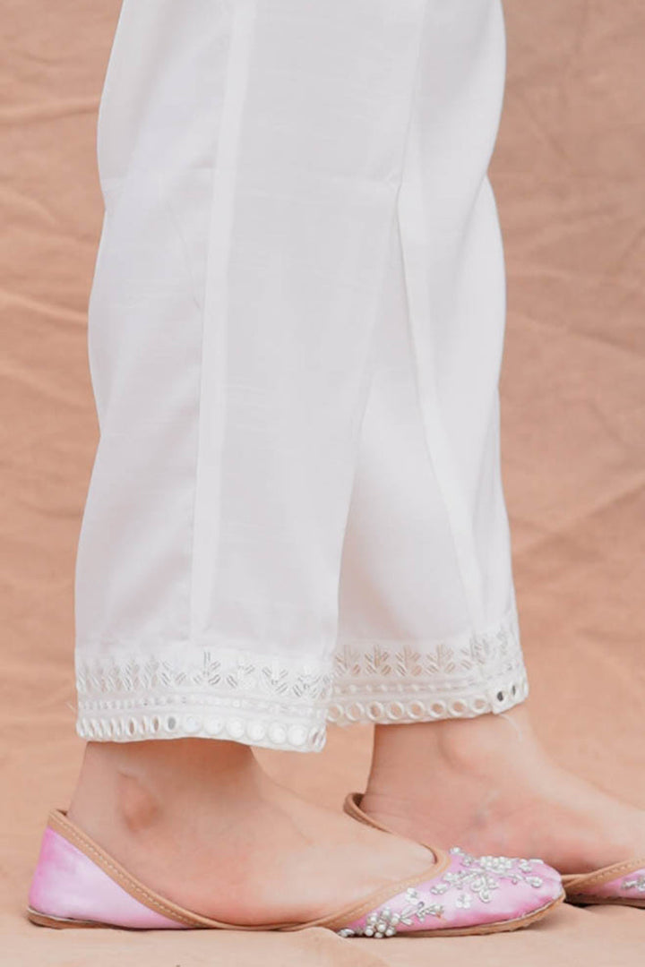 STRAIGHT FITTED RAW SILK SEQUIN EMBROIDERED PANTS