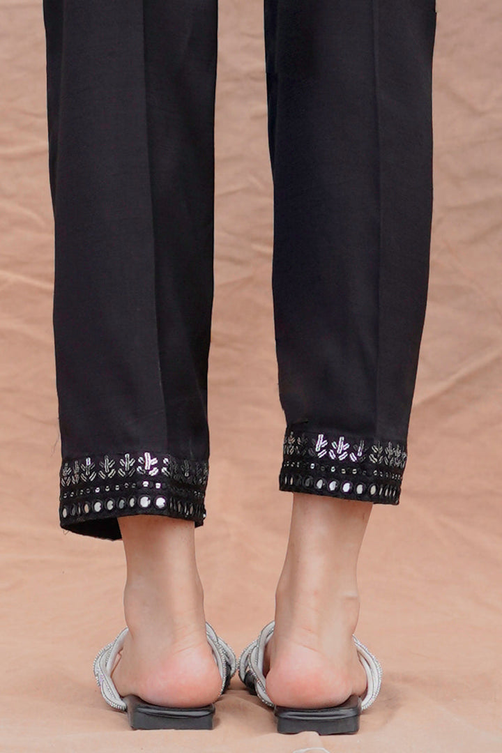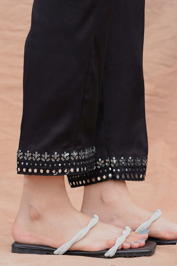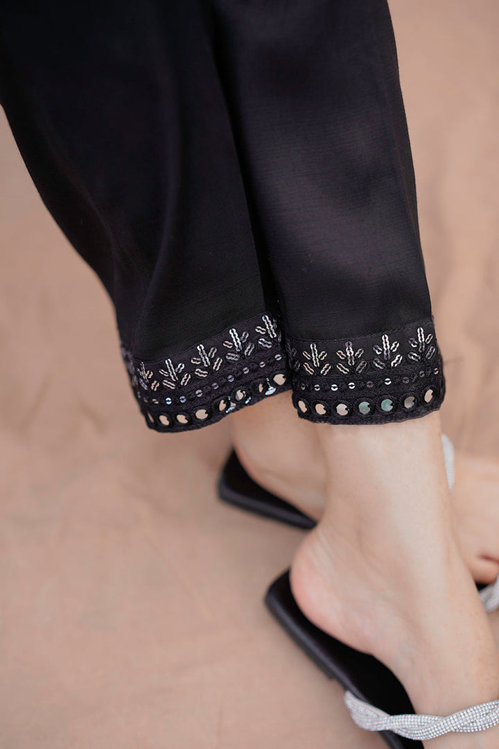 STRAIGHT FITTED RAW SILK SEQUIN EMBROIDERED PANTS