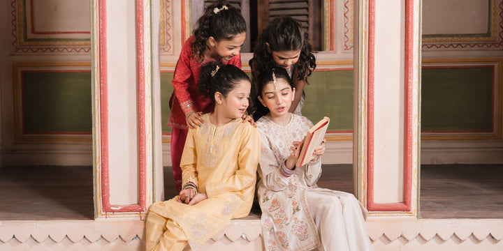 A modern yet graceful shirt featuring a traditional design, elegantly embellished with vibrant floral embroidery and dazzling accents layered on a mesmerizing yellow canvas. Paired with a solid shalwar, this statement outfit is the perfect choice for your girls to wear on festive occasions.