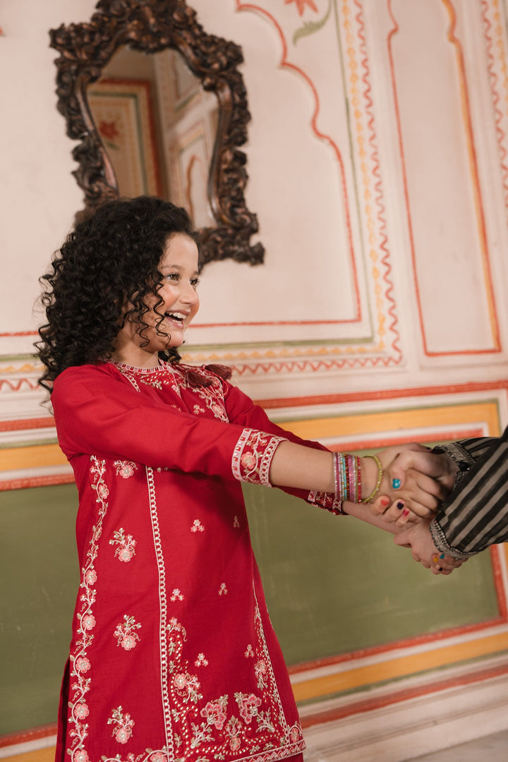A contemporary composition crafted in a trendy silhouette shirt beautifully adorned with captivating floral designs embroidered in vibrant colors illustrating traditionally rich elements. Paired with a classy embroidered shalwar, this style statement outfit is a perfect option for your girls to embrace at fun occasions.