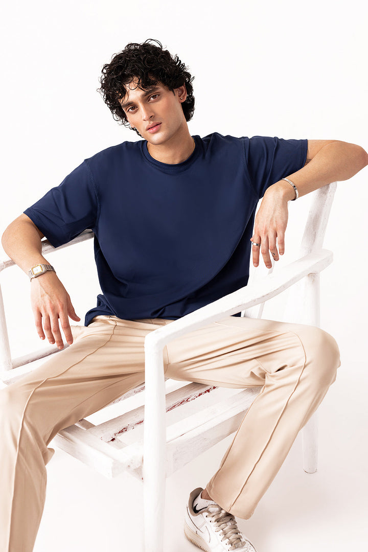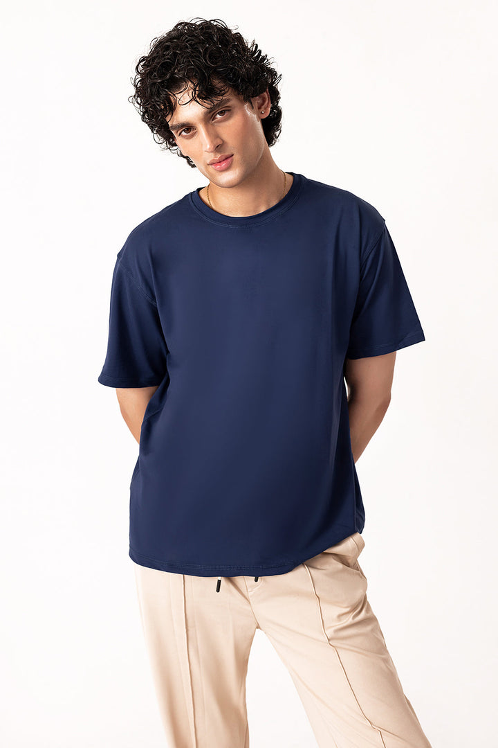 The Boxy Crewneck Tee In Navy Blue Offers A Relaxed, Contemporary Fit With Dropped Shoulders And A Clean Crewneck Line. Crafted From Soft, Breathable Fabric, It Delivers Effortless Comfort And Timeless Style. A Versatile Essential From SAYA, Perfect For Everyday Wear Or Layered Minimalist Looks.