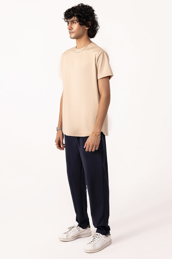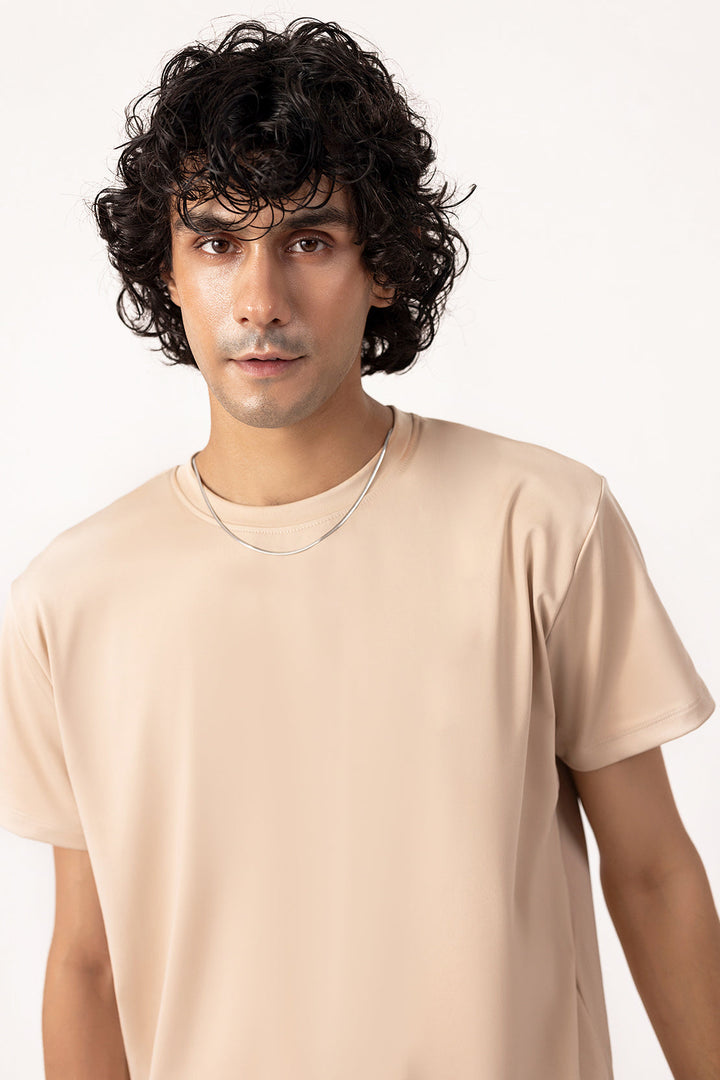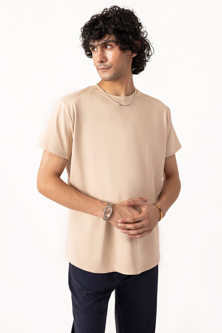Elevate Everyday Style With This Boxy Crewneck Tee In Beige, Designed For A Relaxed Silhouette And All-Day Comfort. Its Soft Fabric And Versatile Fit Make It A Wardrobe Staple. Discover Easygoing Elegance At SAYA