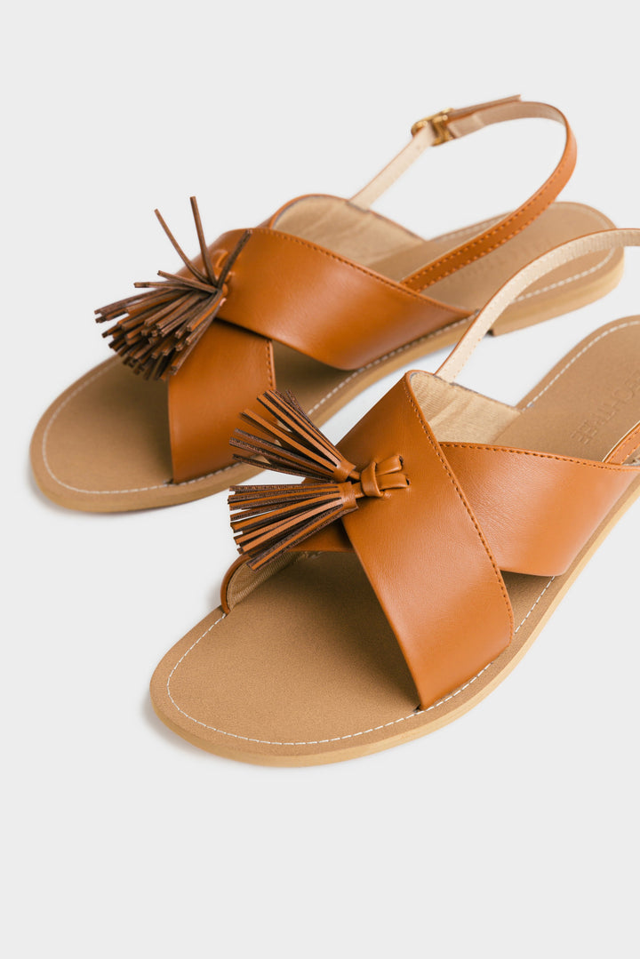 Add Comfort to Casual by wearing these brown sandals with added decorative tassel.