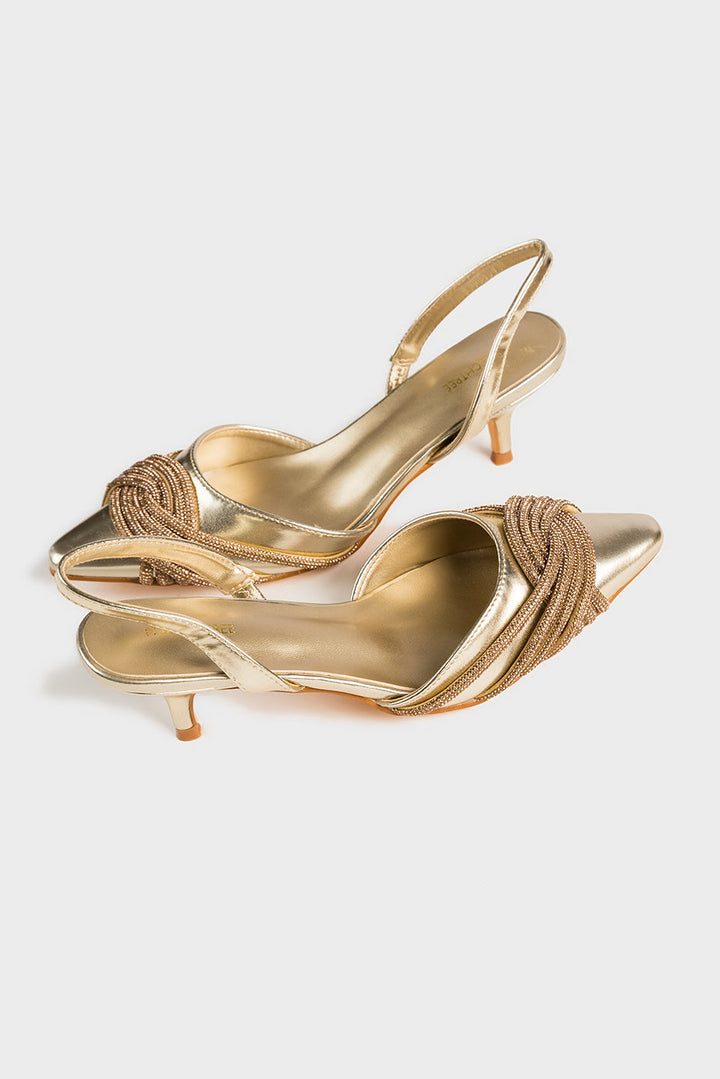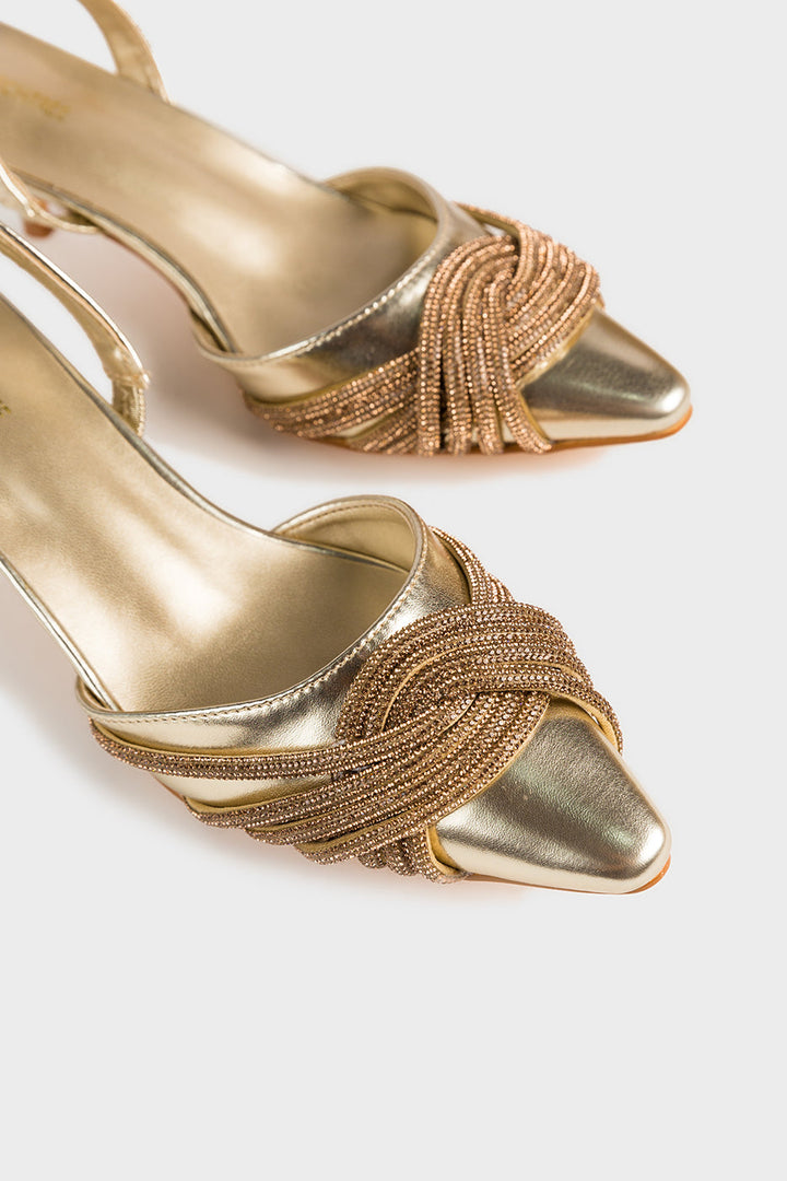 Midnight Black Slingback Heels Adorned with Gems, Perfect for All Formal Events