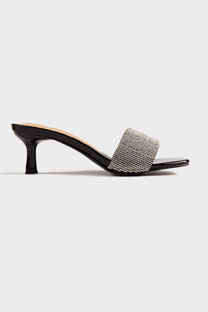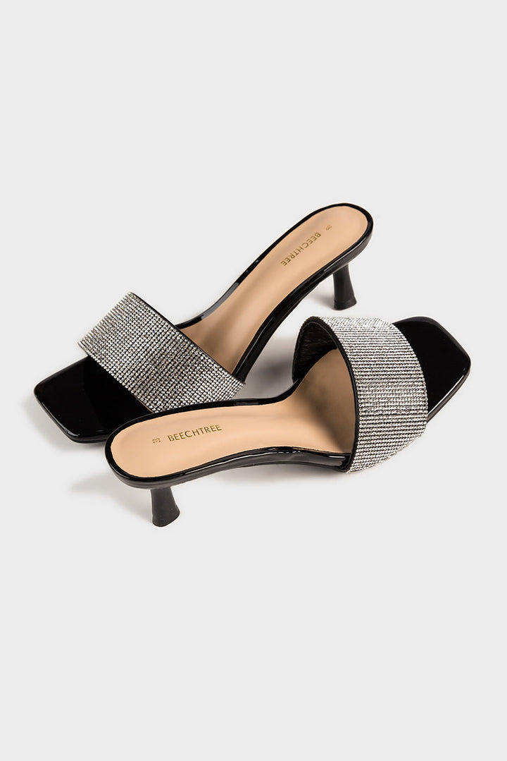 Kitten Heel Rhinestone Square Toe Sandals For Girls and Women