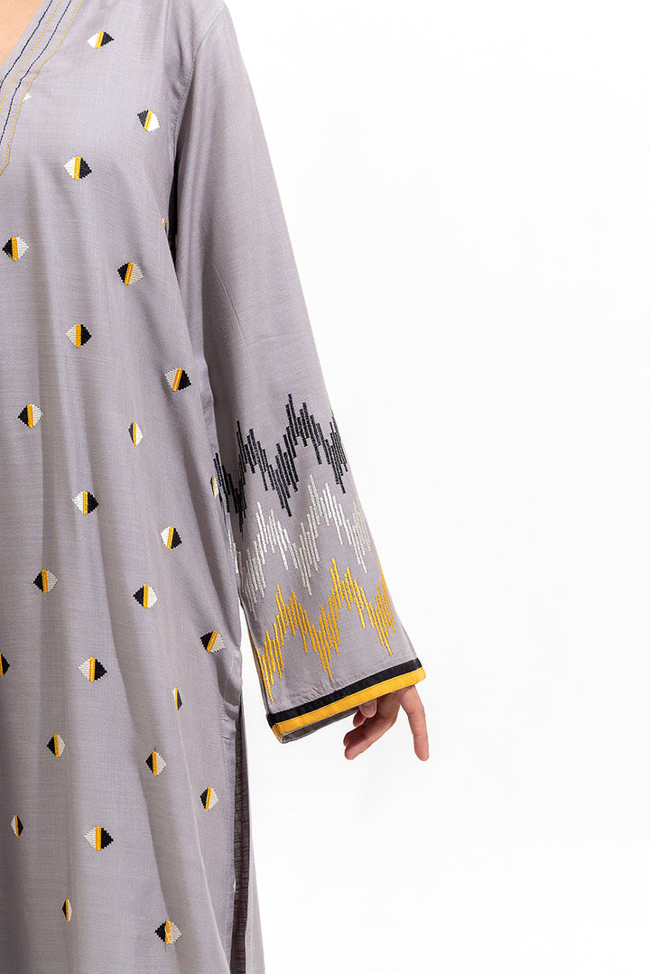 - Description: Embroidered Shirt With Placket And Button Detail.Embroidered Sleeves With Accent Taping.Back With Accent Tape Detail. Round Hem.Paired With Embroidered Sharara Pants.