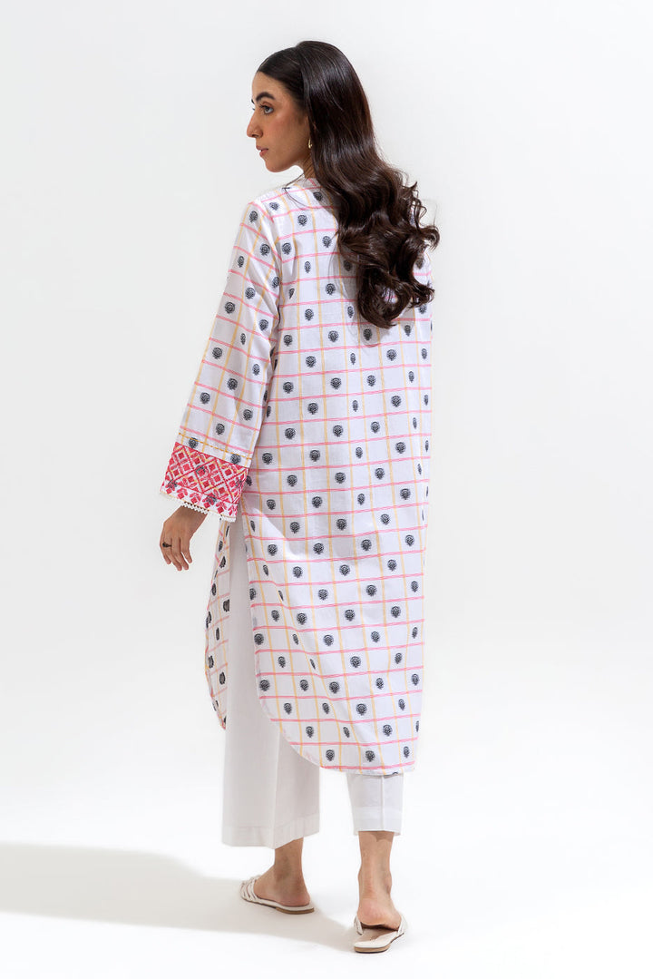 - Description: Band Neckline With Slit With Button Detail.Embroidered Border On Sleeves.Round Hem With Top Stitch Detail.