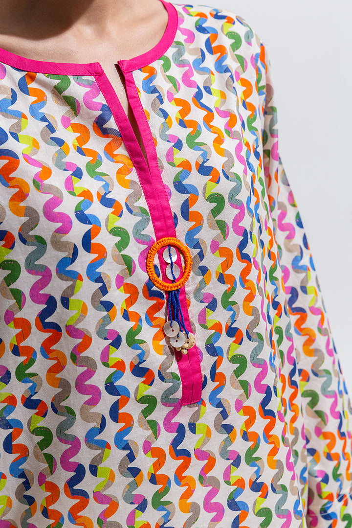 - Description: Digital Printed Kurta With Boatneck And Placket With Button Detail.