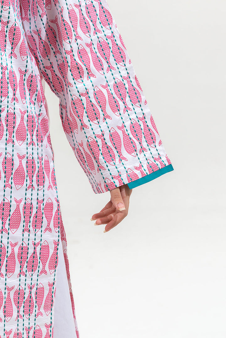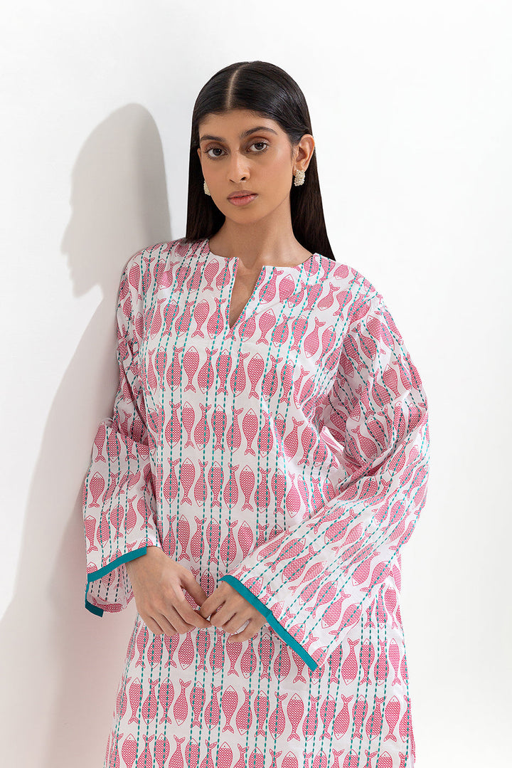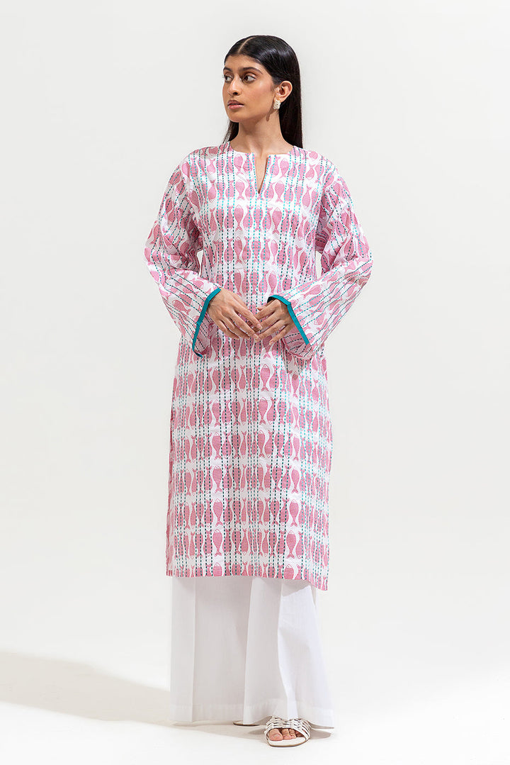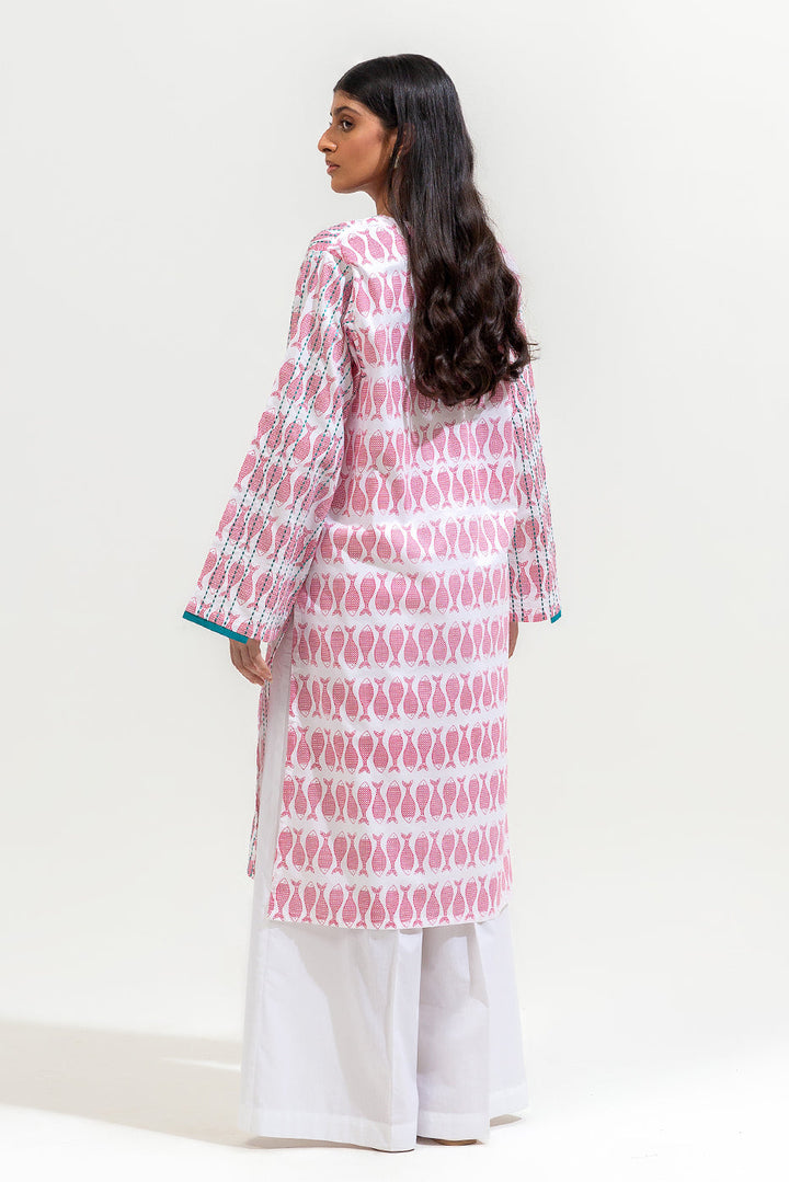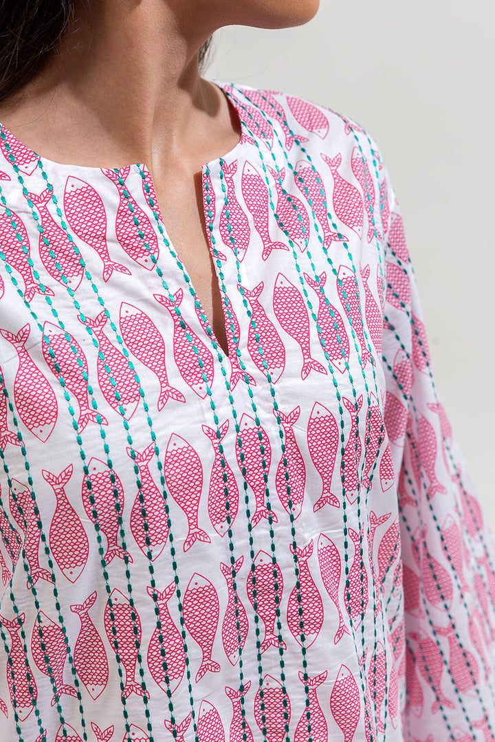 - Description: Printed Kurta With Embroidery Round Neck And Slit.Button Detail On Back.Straight Hem.