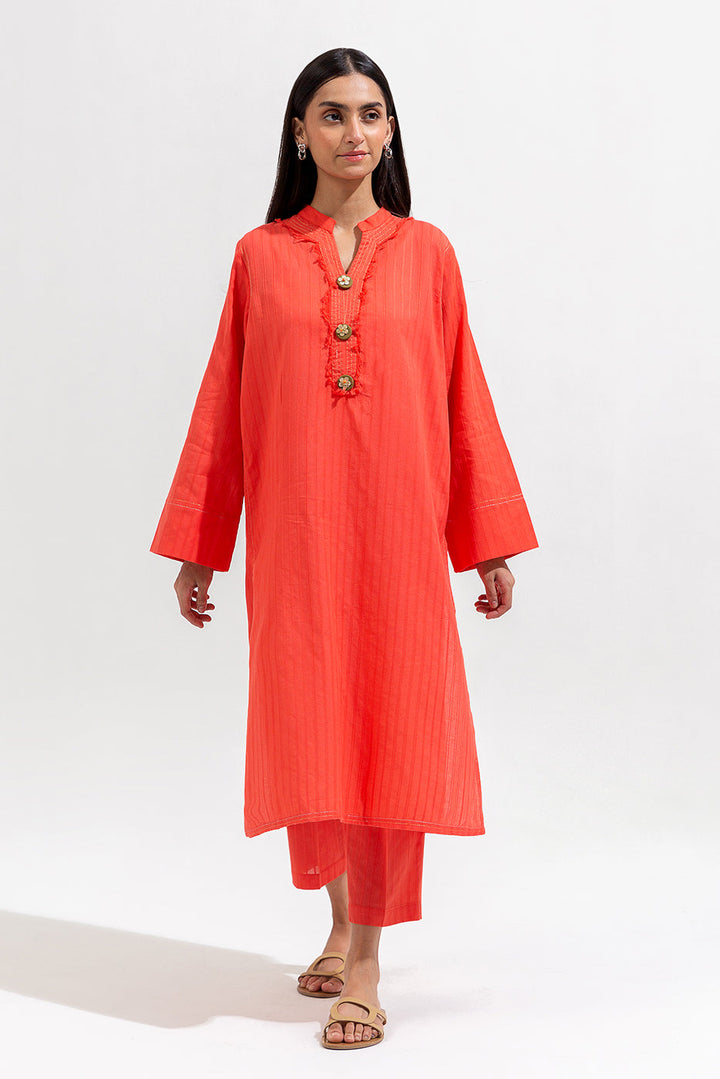 - Description: Basic Shirt With Band And Placket With Tilla Detail And Fray Edges.Hand Embroidered Buttons On Front.Straight Hem.