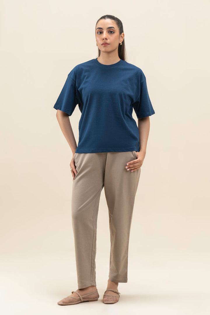 - Description: Classic navy blue round-neck t-shirt with relaxed short sleeves and a comfortable, casual fit.