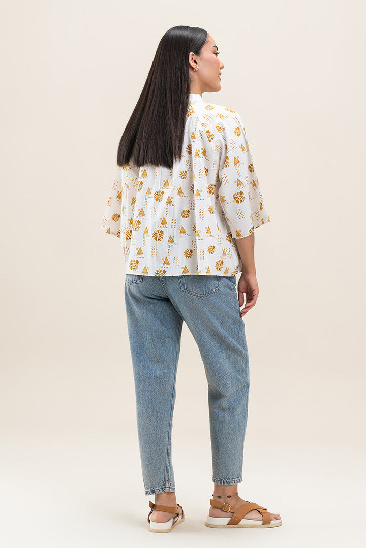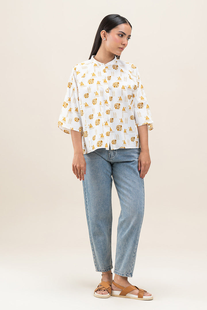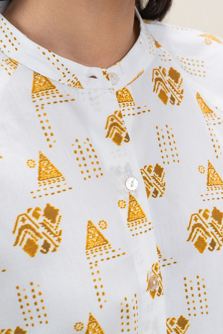 - Description: Printed Blouse With Raglan Cutline, Princess Panels Detail Along With Button-Through Opening.