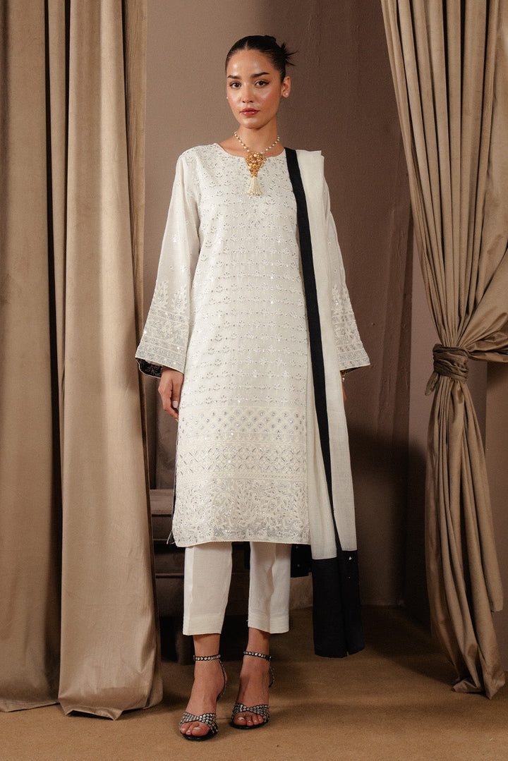 3 PIECE EMBROIDERED PAPER COTTON SUIT (LUXURY-PRET)