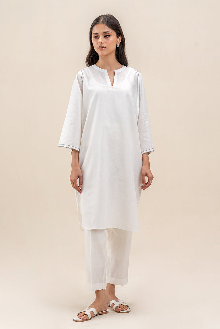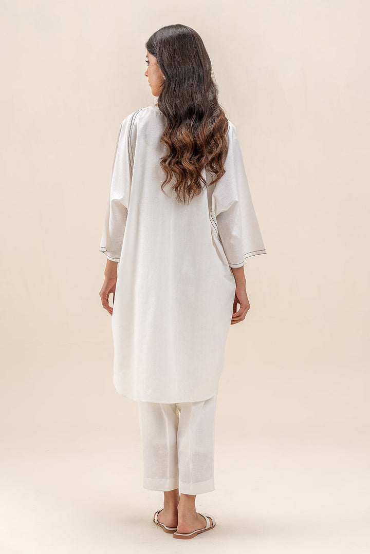 - Description: 2Pc.Shirt With Band And Slit With Top Stitch Detail On Front And Sleeves.Raglan Sleeves With Round Hem.Paired With Straight Pants.