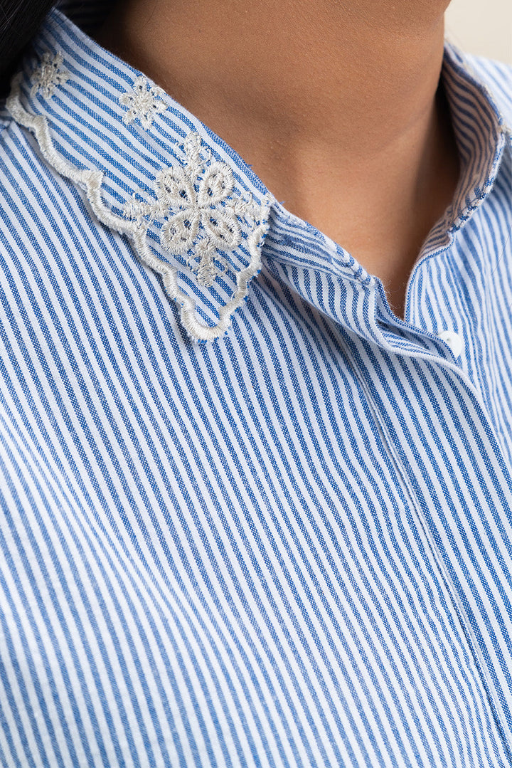 - Description: Button-Through Embroidered Shirt With Hidden Placket Deatil And Embroidery On Hem And Collar