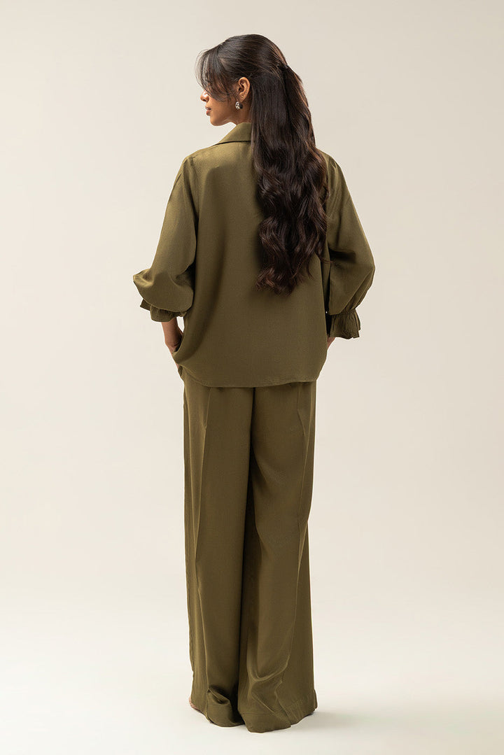 - Description: Coord Set Comprising Of Collar With Pleates V Top And Smocking On Sleeves Paired With Elasticated Waist Wide Leg Trousers