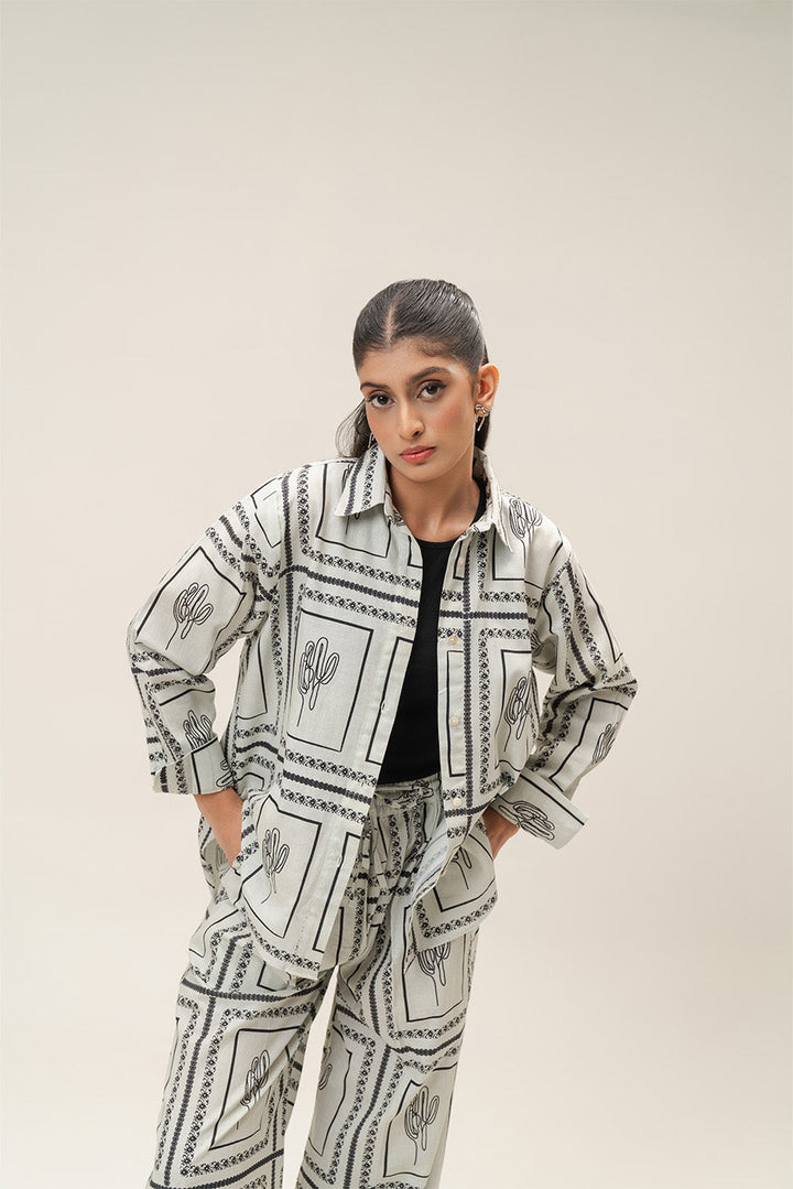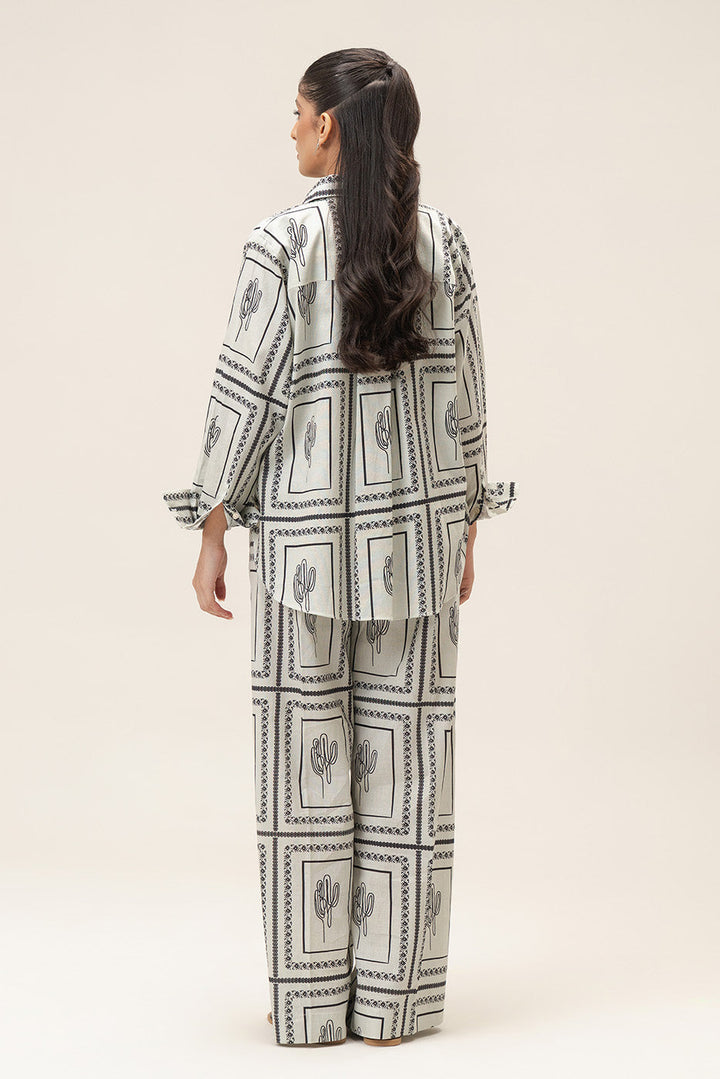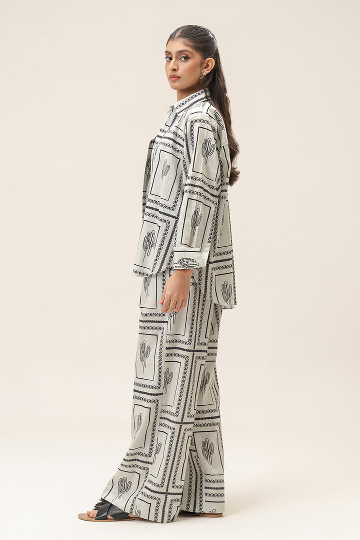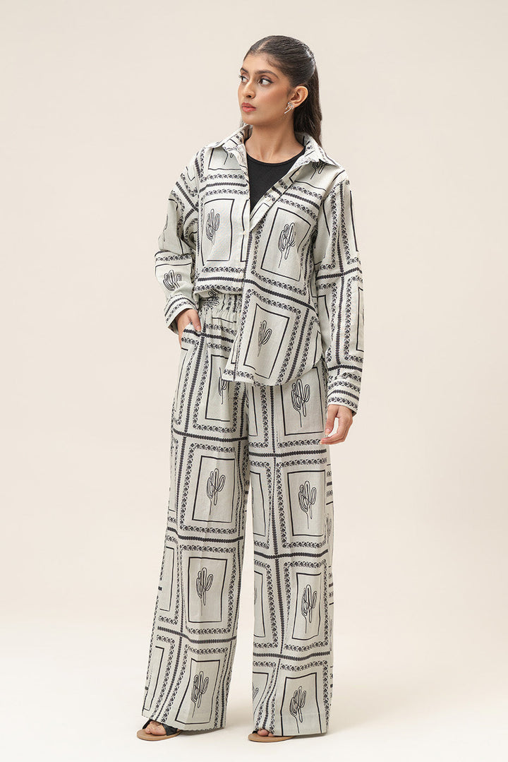 - Description: Printed Coord Set Comprising Of Button-Through Shirt Paired With Elasticated Waist Wide Leg Trousers