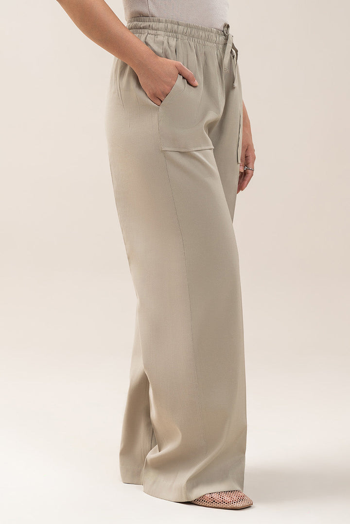- Description: Wide Leg Trouser With Elastication Detail At Center Back Along With Cross Pocets Detail.