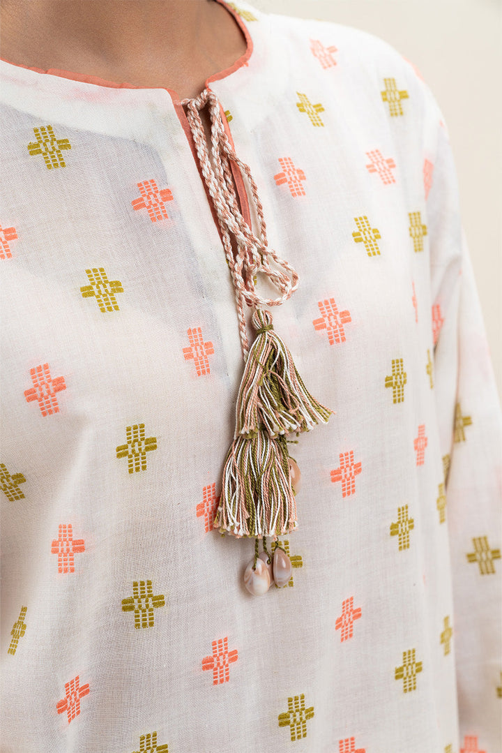 - Description: Jacquard Embroidered Shirt With Round Neckline And Tassels Paired With Jacquard Duppatta.