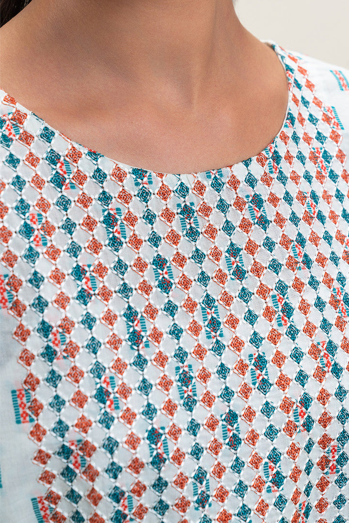 - Description: Embroidered Shirt With Round Neckline And Sleeves With Reverse Jacquard Border And Contrasting Trim Detail. Paired With Contrasting Dupatta To Complete The Look.