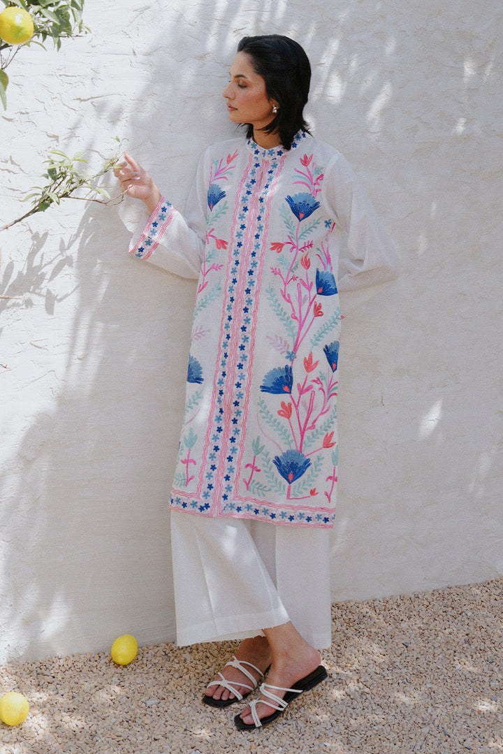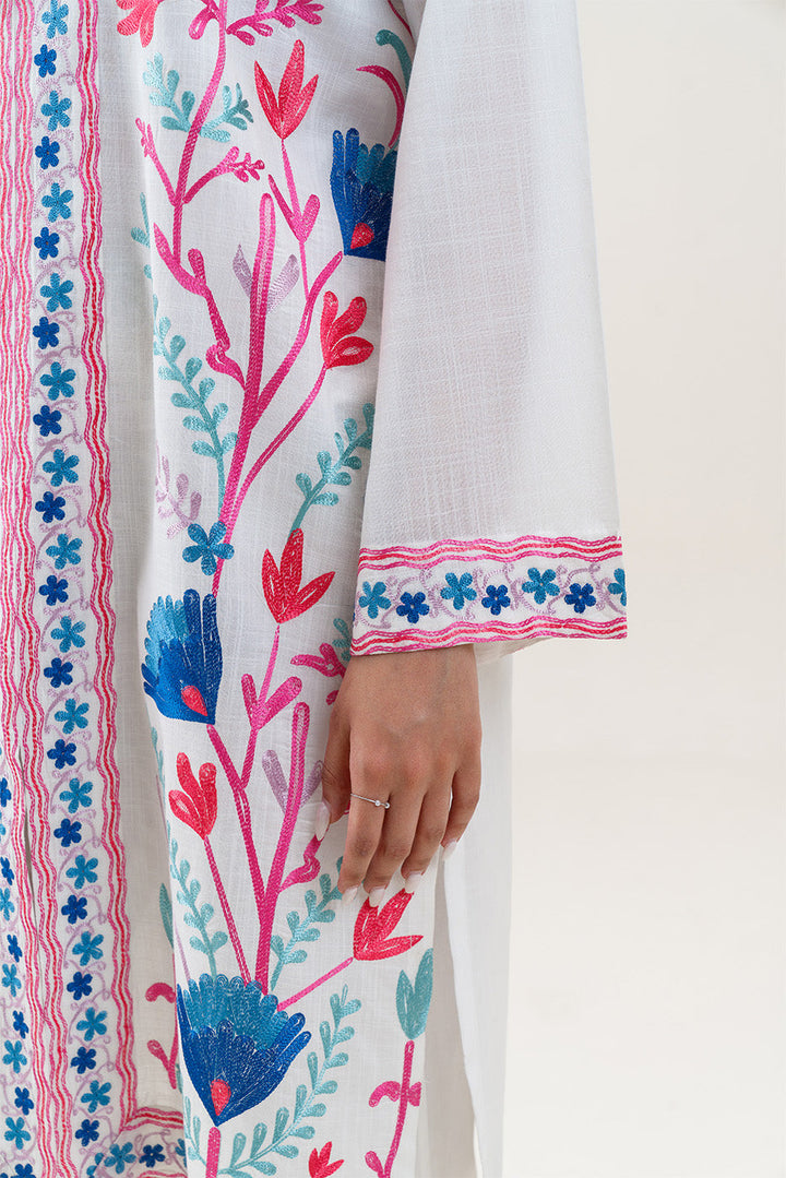 EMBROIDERED SLUB LAWN SHIRT (PRET)