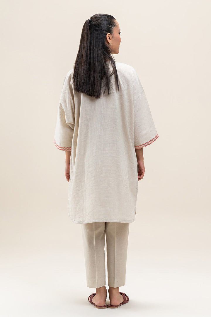- Description: Screen Printed Tunic With Stitching Detail On Front And Sleeves Paired With Straight Pants