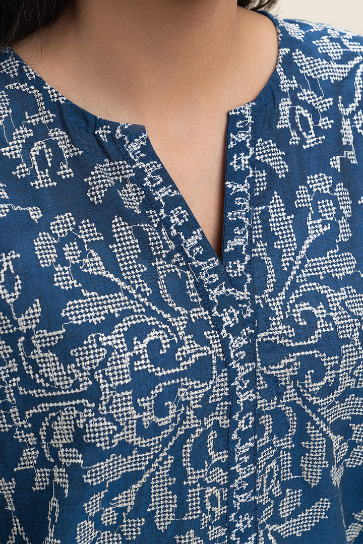 2 PIECE EMBROIDERED CHAMBRAY SUIT (PRET)