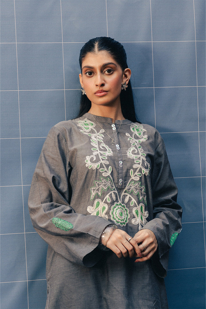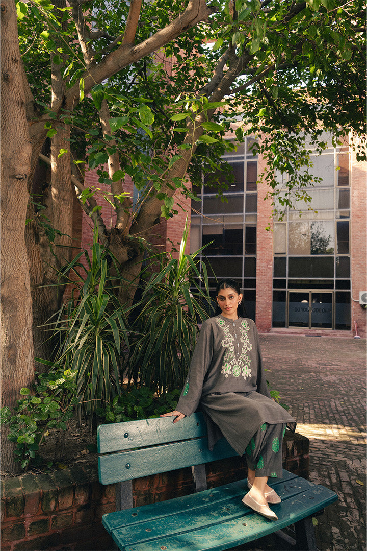 2 PIECE EMBROIDERED CHAMBRAY SUIT (PRET)