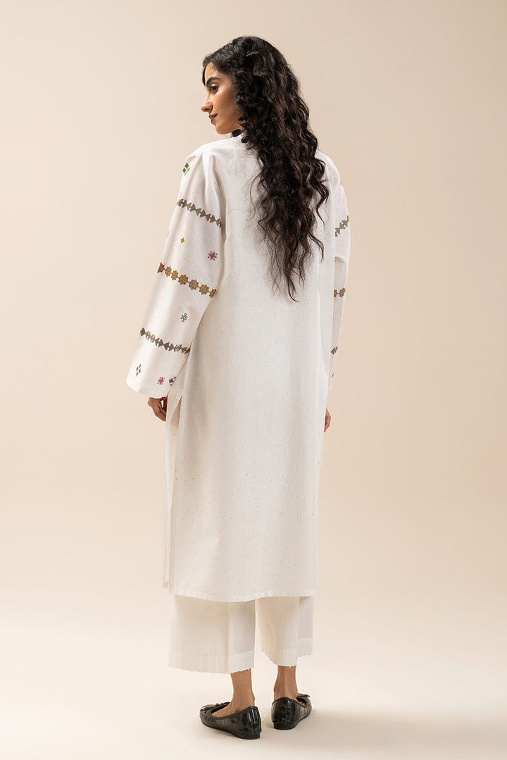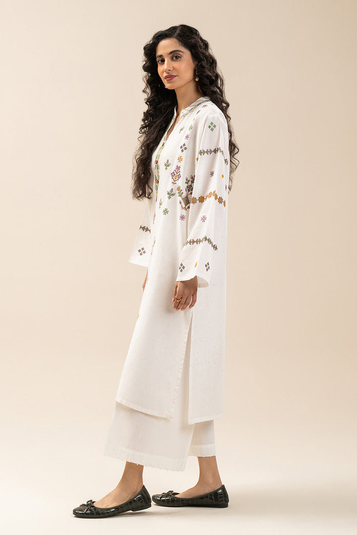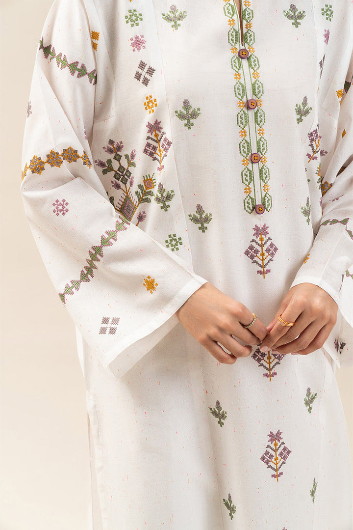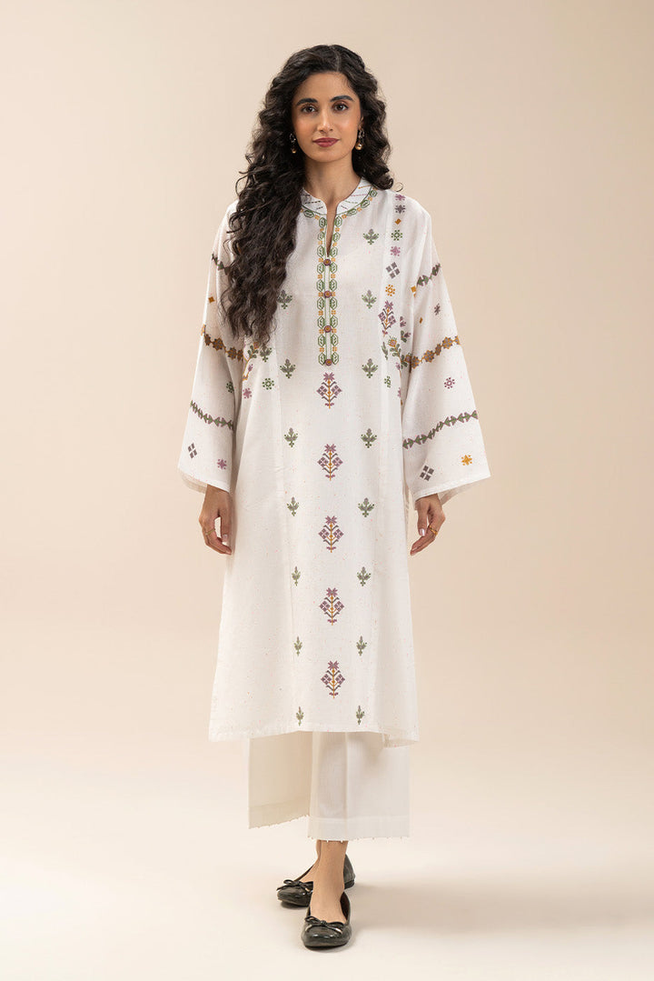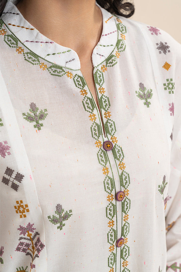 - Description: Cross Stitch Embroidered Shirt With Band Slit Neckline.