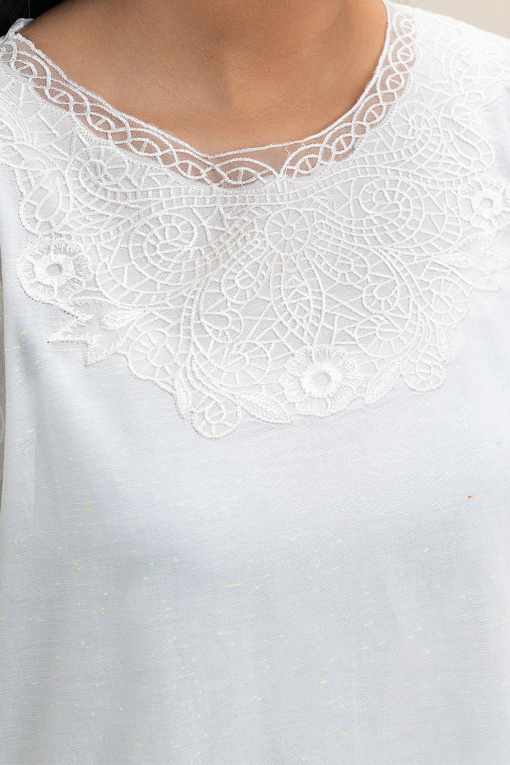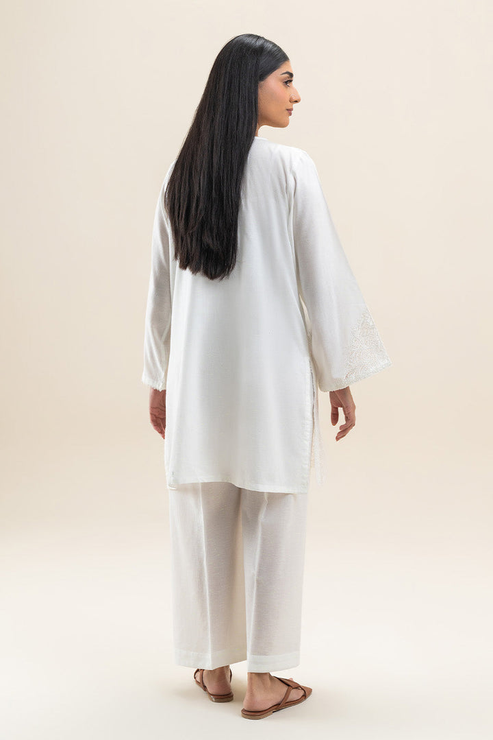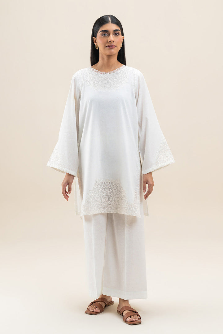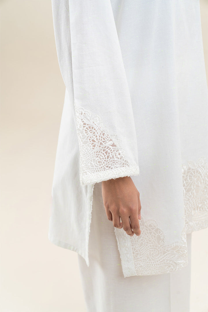 - Description: Embroidered Shirt With Round Neckline And Embroidered Organza Inserts On Neckline , Hem And Sleeves. Paired With Culotte Pants To Complete The Look.