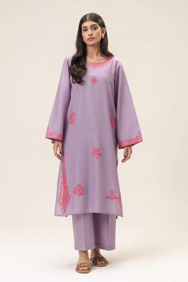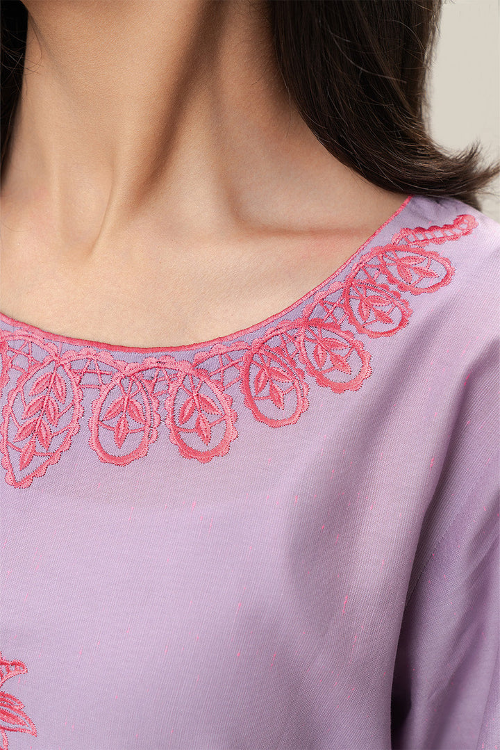 - Description: 2Pc Embroidered Shirt With Round Neckline Paired With Culotte.