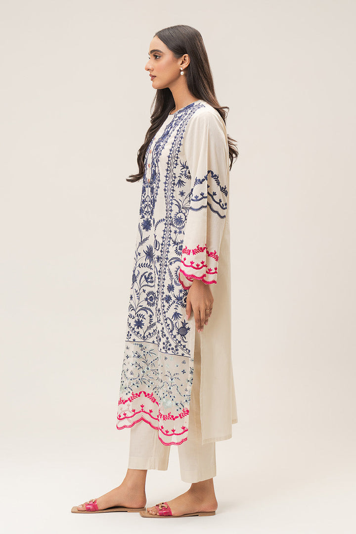 - Description: 2Pc.Embroidered Shirt With Round Neck And Button Detail.Embroidered Scalloped Hem And Sleeves With Organza Insertions.Paired With Straight Pants.