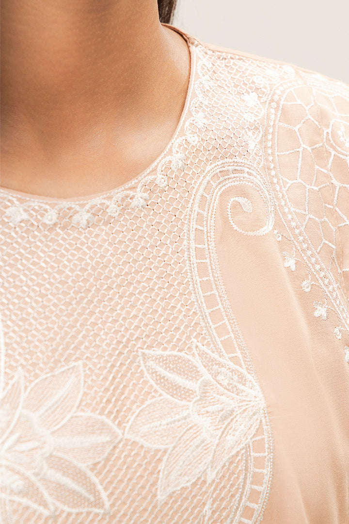 - Description: Embroiderd Mid Length Shirt Along With Embroidared Sleeves, Paired With Culotte Pants.